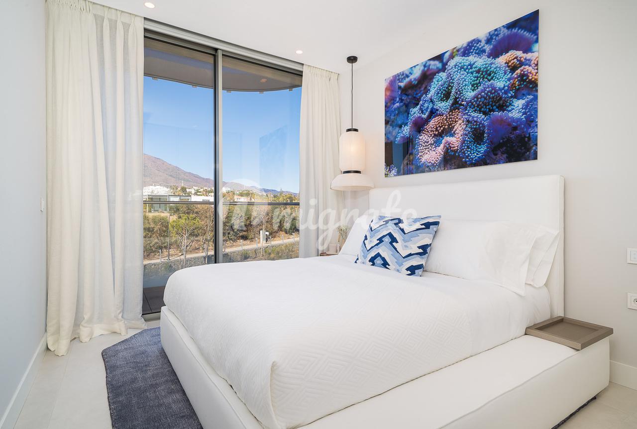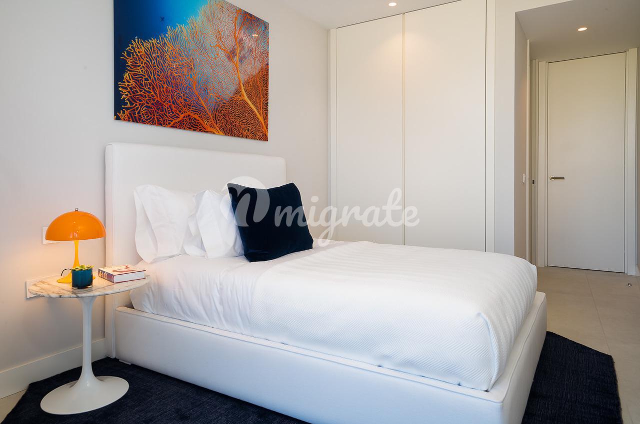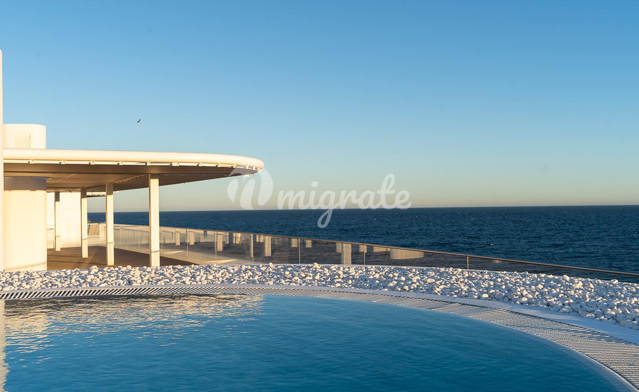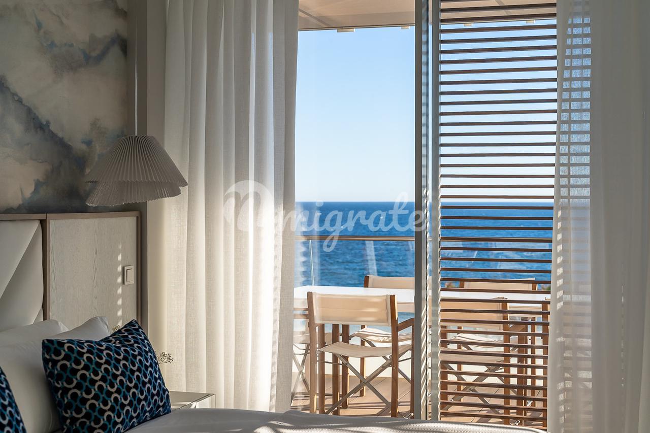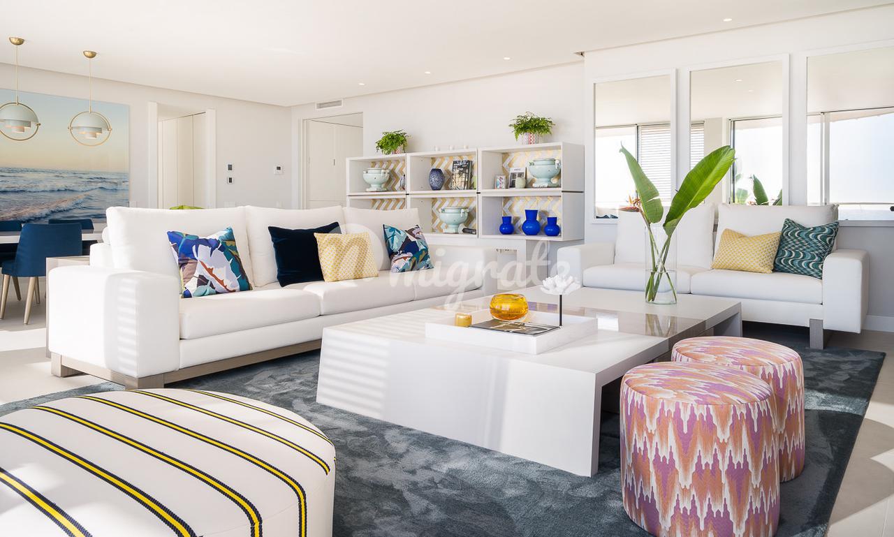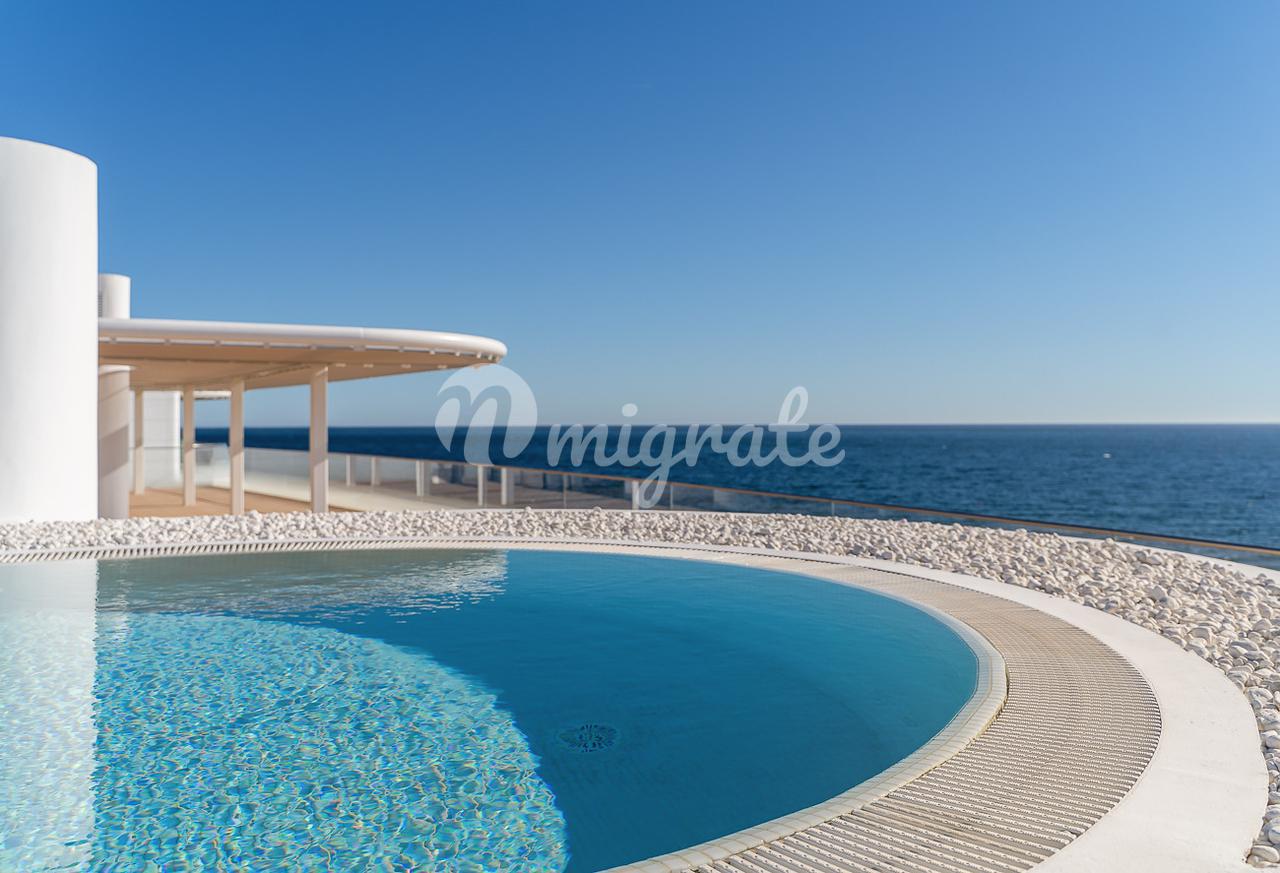 Этот красивый двухуровневый пентхаус имеет 4 спальни с ванными комнатами и гостевой туалет. Гостиная/ столовая с фронтальным видом на море просторная и светлая благодаря многочисленным окнам от пола до потолка. Полностью оборудованная кухня с бытовой техникой Gaggenau. Прекрасная терраса окружает квартиру, что делает ее приватной, и с нее открывается невероятный вид на побережье Средиземного моря. Спальня с ванной комнатой в одном крыле дома и три дополнительные спальни также с ванными комнатами в другом крыле собственности завершают планировку нижнего уровня. На верхнем уровне расположен большой солярий с частным бассейном и панорамным видом на море и горы. Террасы на первом этаже плюс солярий имеют приблизительную площадь 500 м2.