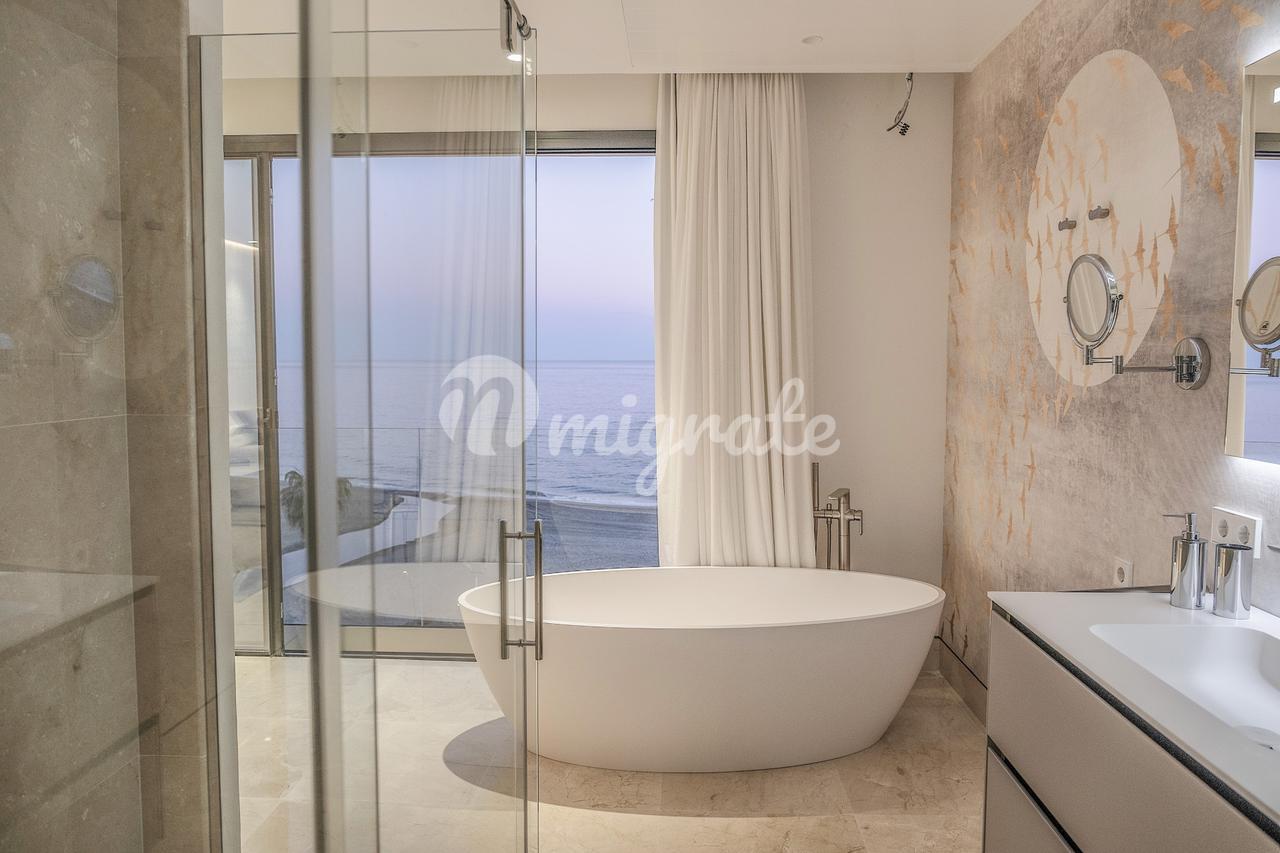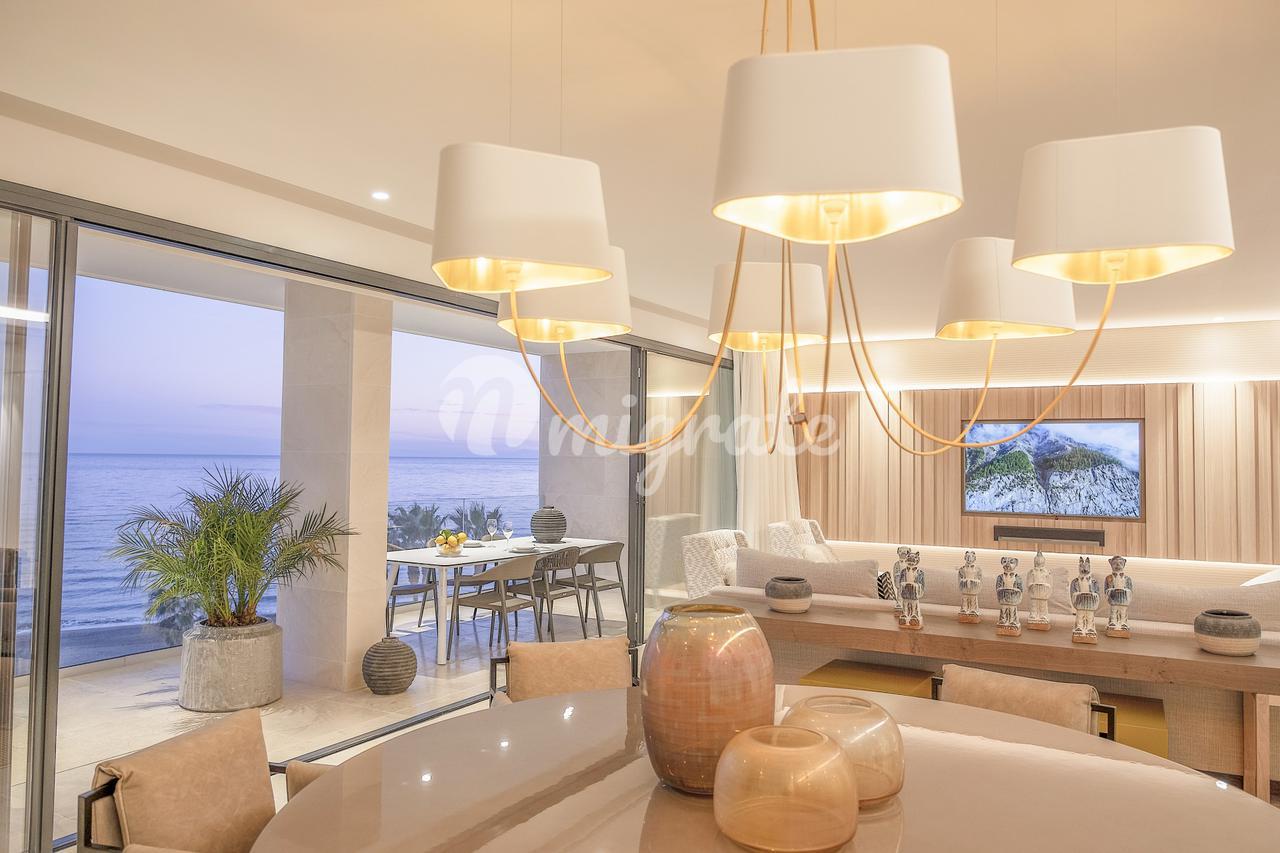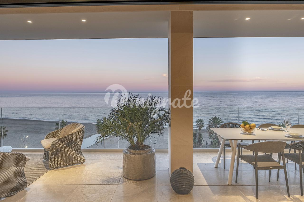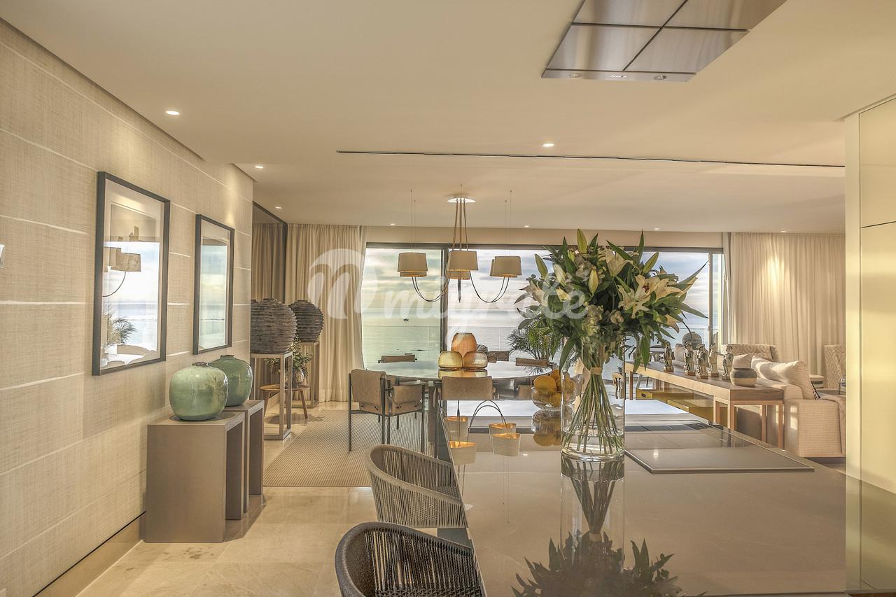 Квартира расположена на пятом этаже здания на набережной Эстепоны, в окружении всевозможных услуг и удобств. Эта трехкомнатная квартира с захватывающим видом является идеальным местом для тех, кто любит море и пляж. Войдя, мы находим спальню с ванной комнатой и гостевой туалет, справа две спальни с ванной комнатой, одна из них главная с гардеробной и выходом на переднюю террасу к морю. Напротив находится открытая кухня, гостиная с выходом на террасу. В доме также есть прачечная и кладовая. В стоимость входит парковочное место на близлежащей автостоянке.