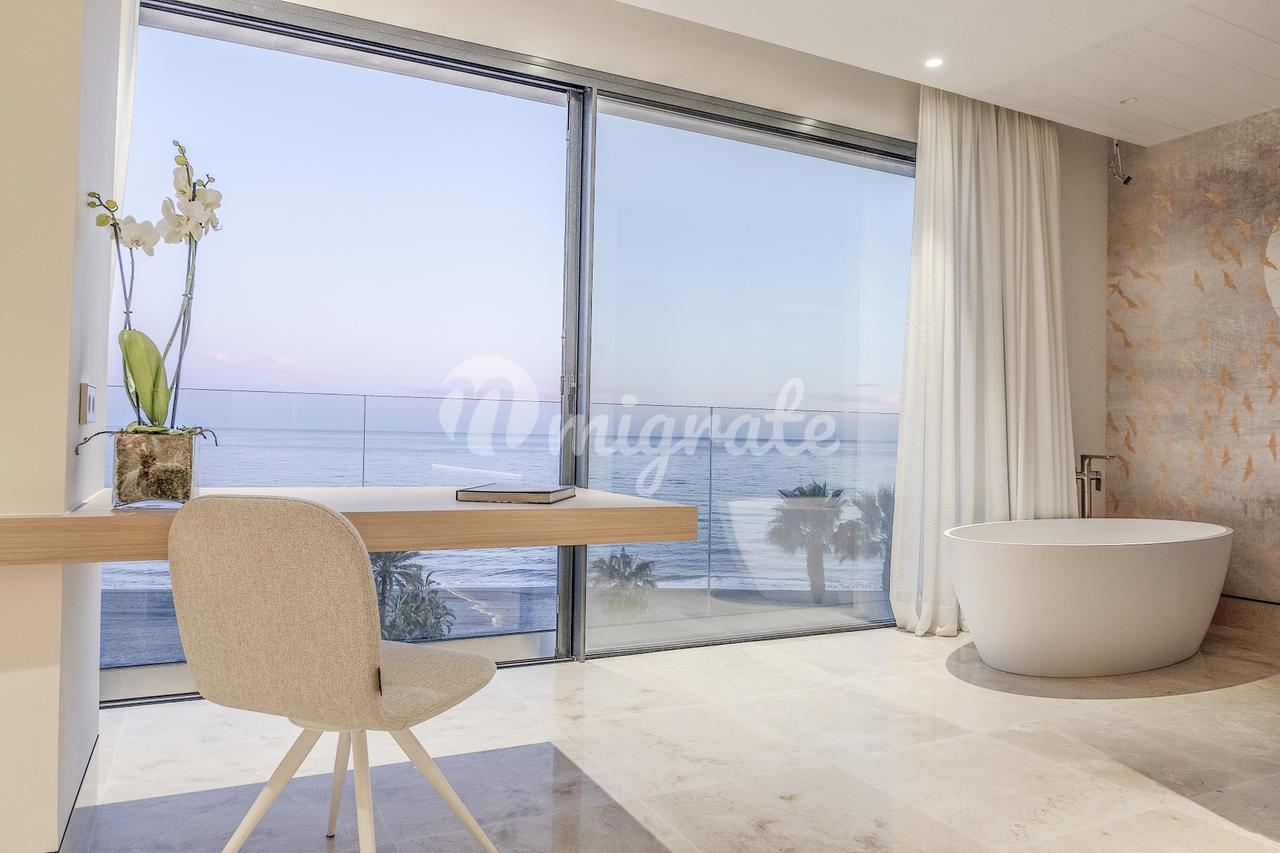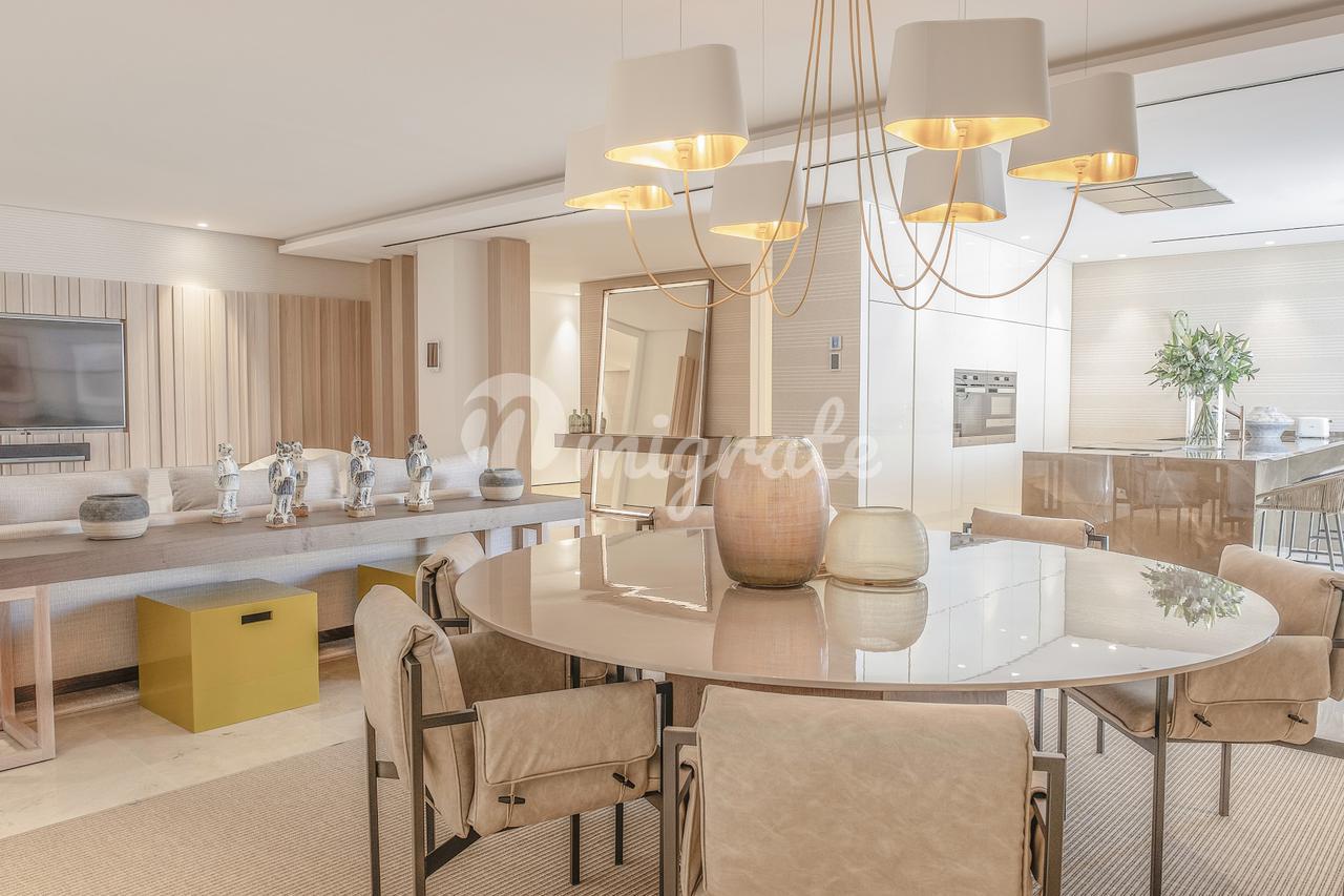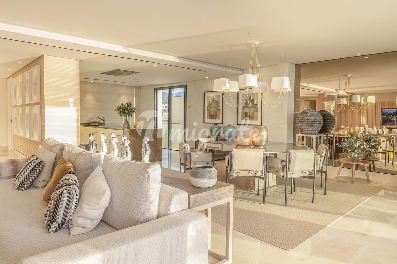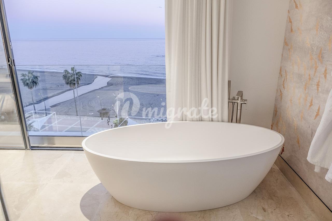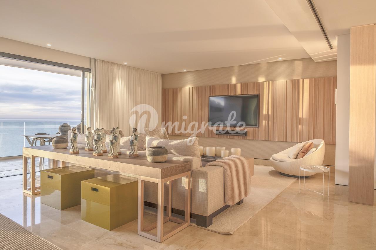 Квартира расположена на пятом этаже здания на набережной Эстепоны, в окружении всевозможных услуг и удобств. Эта трехкомнатная квартира с захватывающим видом является идеальным местом для тех, кто любит море и пляж. Войдя, мы находим спальню с ванной комнатой и гостевой туалет, справа две спальни с ванной комнатой, одна из них главная с гардеробной и выходом на переднюю террасу к морю. Напротив находится открытая кухня, гостиная с выходом на террасу. В доме также есть прачечная и кладовая. В стоимость входит парковочное место на близлежащей автостоянке.