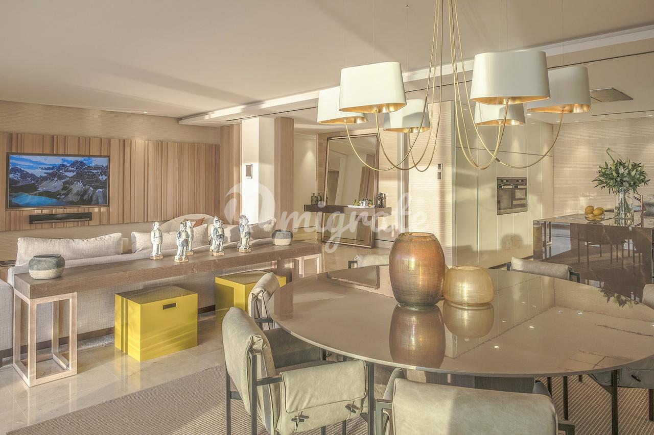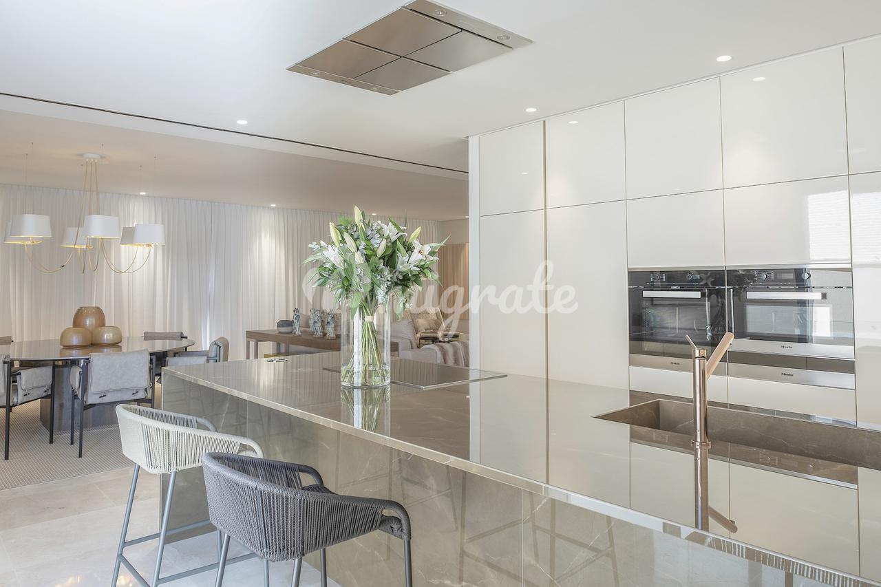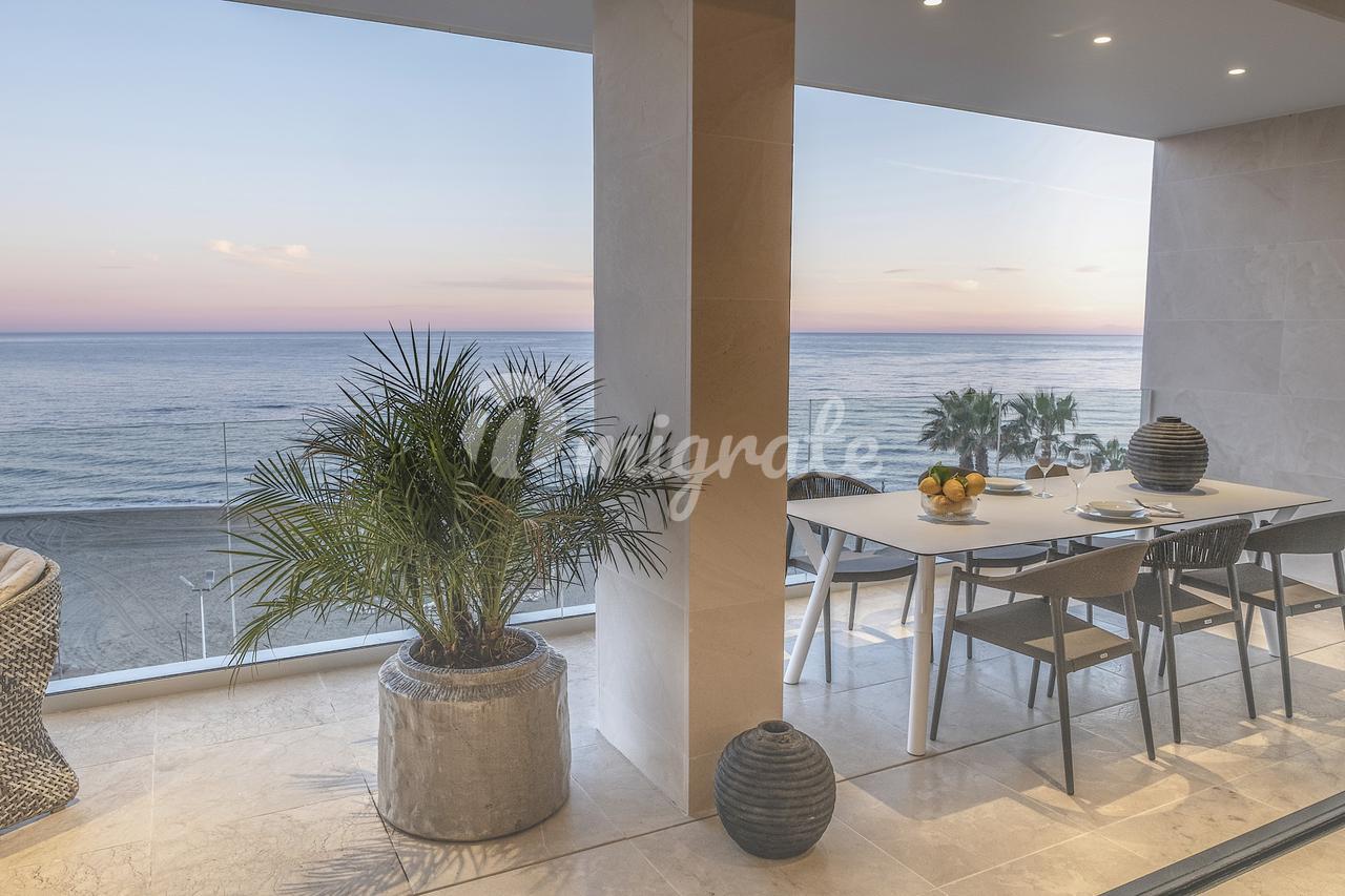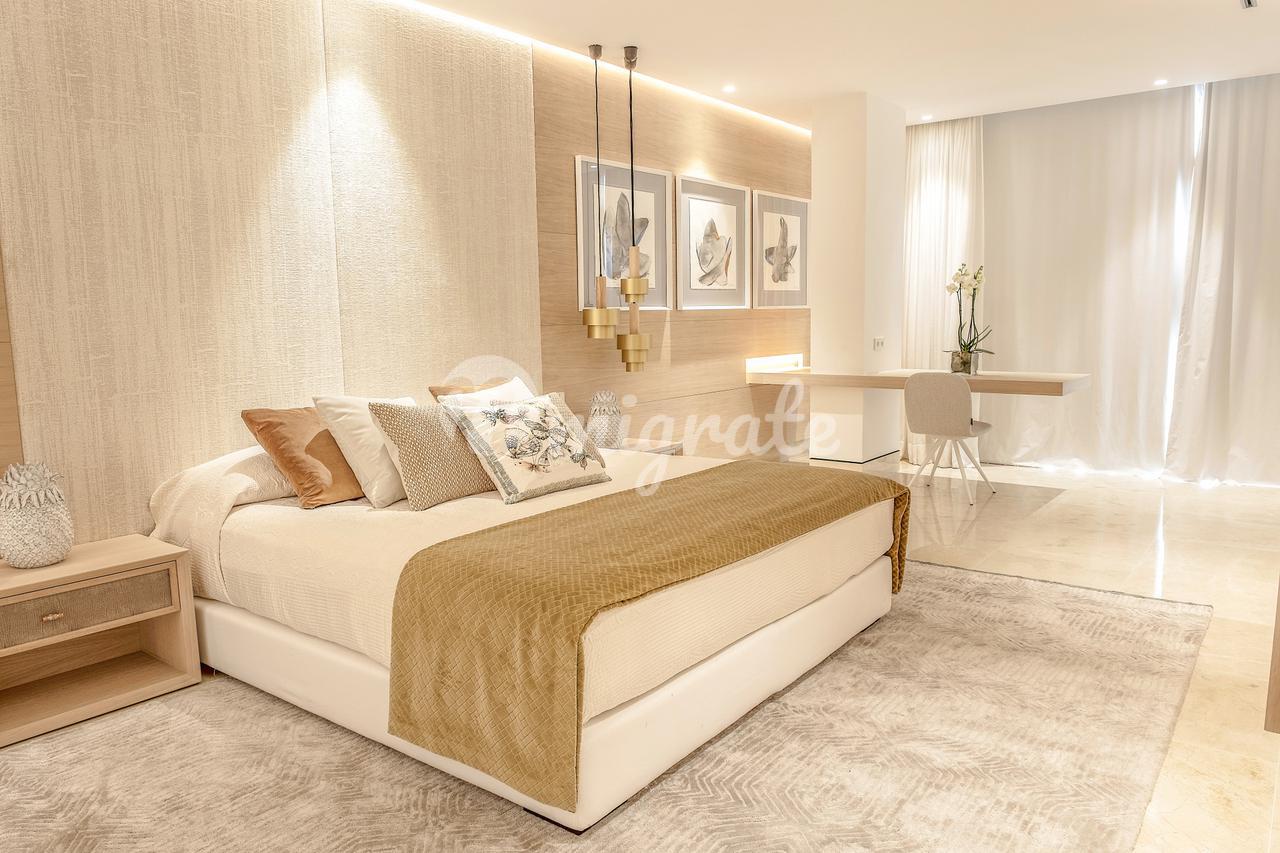 Квартира расположена на пятом этаже здания на набережной Эстепоны, в окружении всевозможных услуг и удобств. Эта трехкомнатная квартира с захватывающим видом является идеальным местом для тех, кто любит море и пляж. Войдя, мы находим спальню с ванной комнатой и гостевой туалет, справа две спальни с ванной комнатой, одна из них главная с гардеробной и выходом на переднюю террасу к морю. Напротив находится открытая кухня, гостиная с выходом на террасу. В доме также есть прачечная и кладовая. В стоимость входит парковочное место на близлежащей автостоянке.