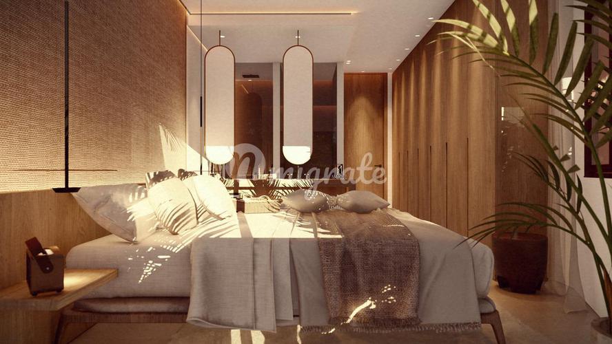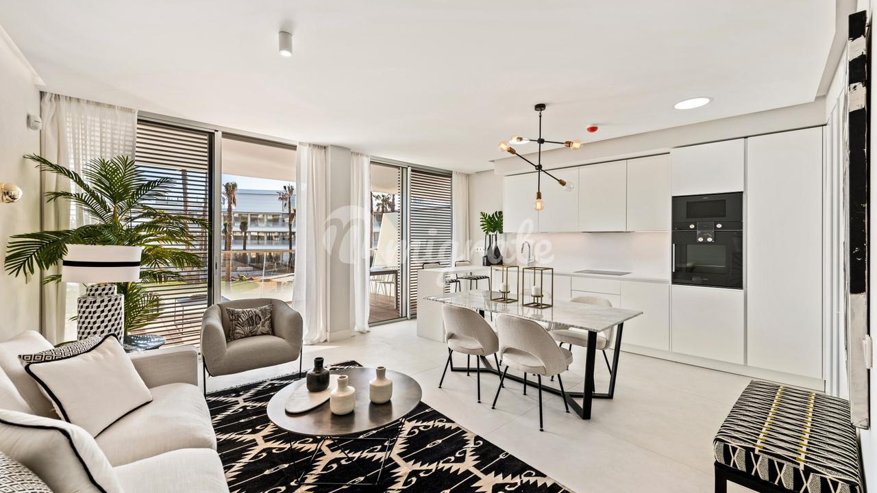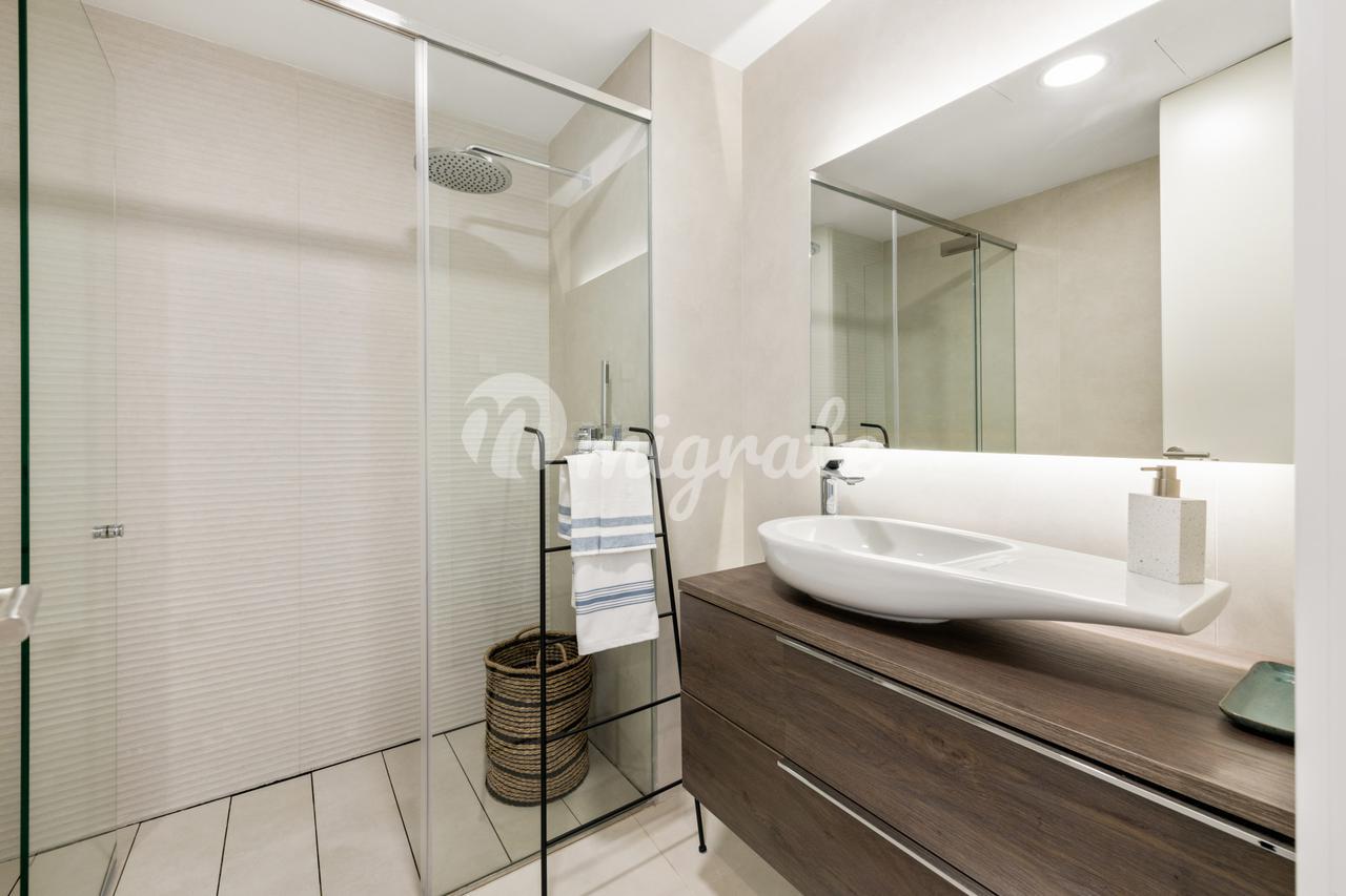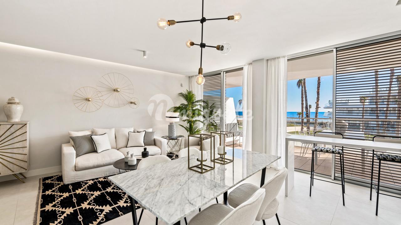 Расположен в комплексе из 70 квартир с видом на море, окруженный в основном бетонной стеной со стеклянными панелями наверху, чтобы сохранить вид. Он безопасен благодаря ограждению периметра, системе видеонаблюдения, круглосуточному контролю доступа как для людей, так и для транспортных средств, а также системе мониторинга для контроля доступа в различные сектора здания. Лестничные перила и места общего пользования выполнены из стекла. Полы в гостиной, кухнях, спальнях, коридорах и прихожей из таких материалов, как керамогранит, напольное покрытие из натурального дерева ироко или доломитовый мрамор. Для лучшей звукоизоляции под все напольные покрытия укладывается ударопрочный лист. Кухня полностью оборудована бытовой техникой Gaggenau, такой как электрическая духовка, микроволновая печь, керамическая и индукционная плиты, вытяжка, двухдверный холодильник и морозильная камера, посудомоечная машина, стиральная машина и сушилка, а также столешницы из Silestone или Corian. Ванные комнаты марки Villeroy & Boch с подвесным биде и туалетом, а также одной ванной Kaldewei в одной из ванных комнат. В квартире есть кондиционер, полы с подогревом и индивидуальная сигнализация, подключенная к центру сигнализации.