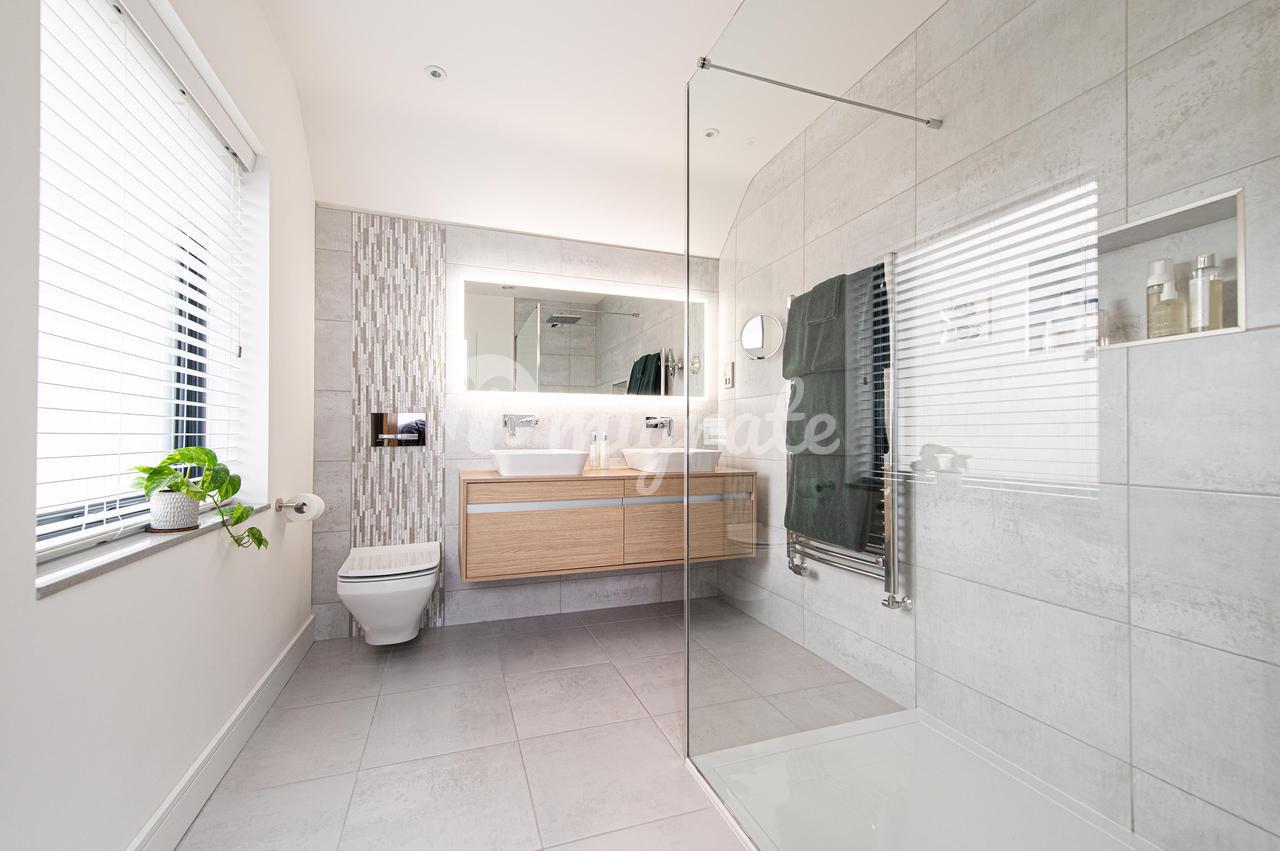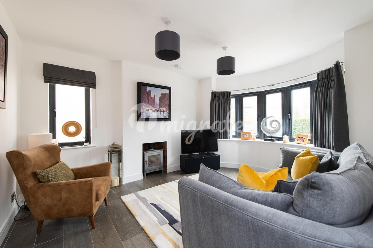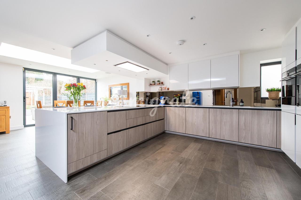 Просторные апартаменты расположены на двух этажах и идеально подходят для современной жизни, благодаря полам с подогревом на всем первом этаже. Существует целый ряд просторных и гибких приемных помещений, включая прекрасную гостиную с эркером и дровяной печью. Прихожая с кафельным полом, гардеробная для гостей и лестница из стекла и дуба, ведущая на второй этаж. Впечатляющая кухня / столовая / семейная комната открытой планировки, безусловно, является центром дома и идеально подходит для семейного проживания. Со вкусом оформленная современная кухня оснащена кварцевыми столешницами, бронзовыми зеркальными накладками и встроенной бытовой техникой, включая индукционную плиту Siemens, посудомоечную машину, холодильник, духовку, пароконвектомат, паровую духовку и два выдвижных ящика для подогрева. Рядом с кухней расположено подсобное помещение с отделением для обуви. Здесь есть большая обеденная зона под фонарем на крыше, пропускающим много света, а двустворчатые двери открываются в сад. Уютная зона отдыха расположена в углу, а еще одна дверь ведет в просторную гостиную с двойным видом на сад и двустворчатыми дверями, выходящими на террасу.