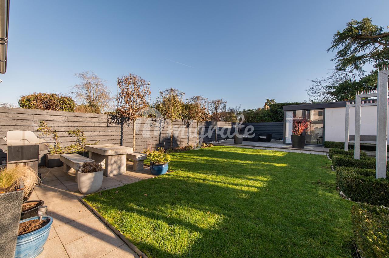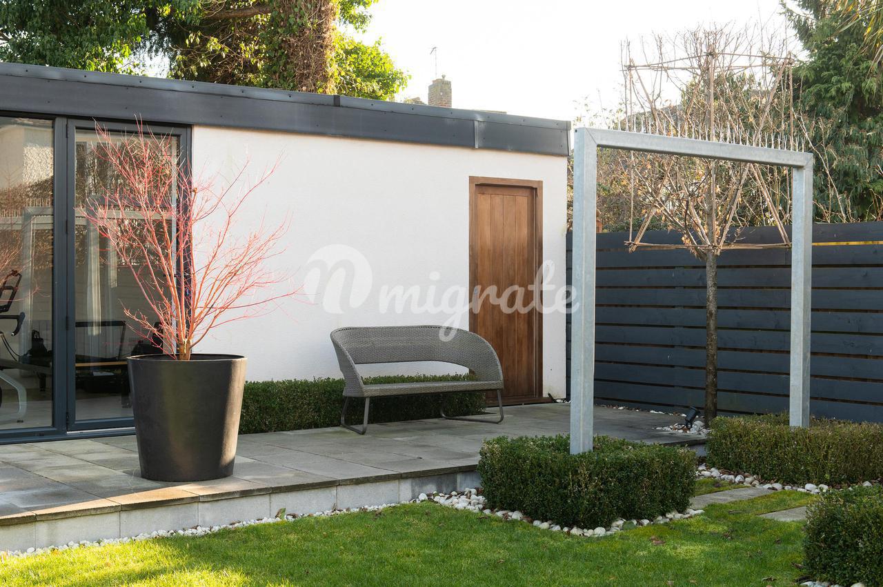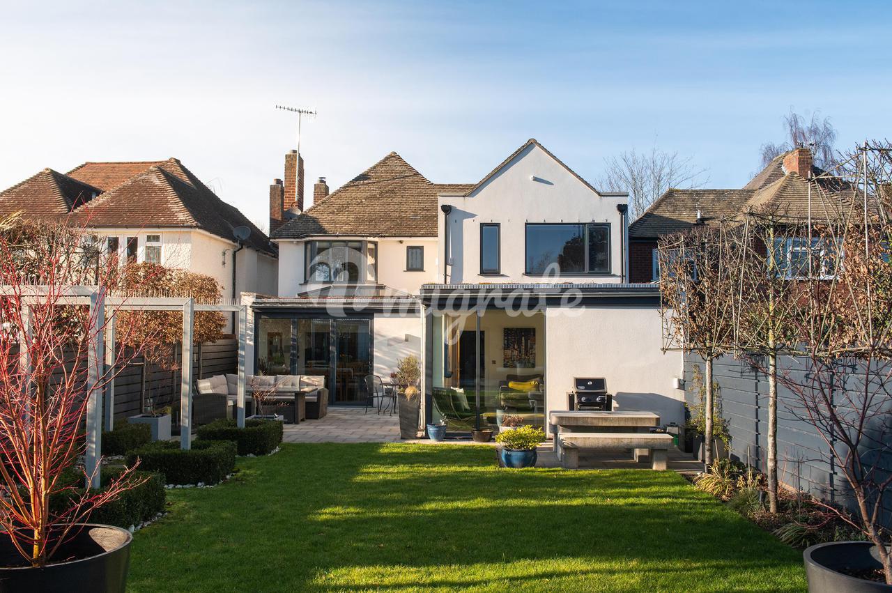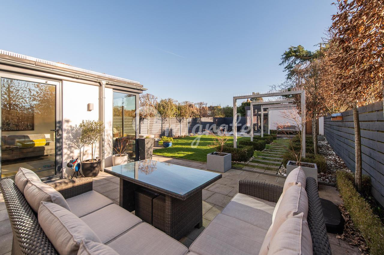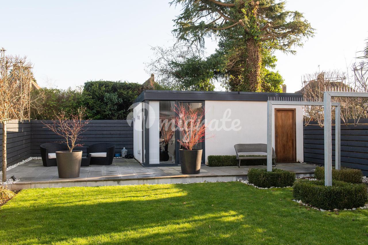 Задний сад, выходящий на юго-восток, является прекрасной особенностью собственности и был профессионально озеленен. В задней части сада, куда можно попасть по современной стальной дорожке, находится отдельно стоящий домик, который является идеальным тренажерным залом / домашним офисом с отдельным магазином. Большой внутренний дворик, куда можно попасть из обеденной зоны или гостиной, идеально подходит для трапез на свежем воздухе, а оставшийся сад в основном разбит на лужайку с дополнительной террасой в заднем углу сада. По обеим сторонам сада растут плетеные деревья.