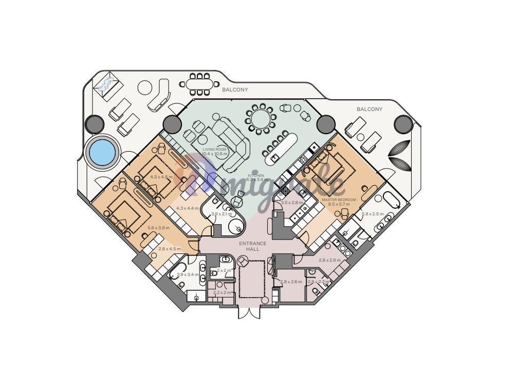 Познакомьтесь с Eywa, новаторской концепцией, ориентированной на состоятельных людей, любящих хорошее самочувствие, образ жизни, благоприятный для природы, и философию Васту Шастры. Расположенный на Марс-Драйв в оживленном районе Бизнес-Бэй с видом на Дубайский канал, 19-этажная резиденция Eywa предлагает высококлассное проживание на набережной в элитных резиденциях. Привлекательная башня открывает новый мир науки, духовности и роскоши, сочетая в себе интерьеры, ориентированные на природу, и передовые технологии с непревзойденными общественными удобствами. Из большинства из 48 роскошных апартаментов и пентхаусов площадью от двух до пяти спален открывается лучший вид на Бурдж-Халифу и извилистый канал.