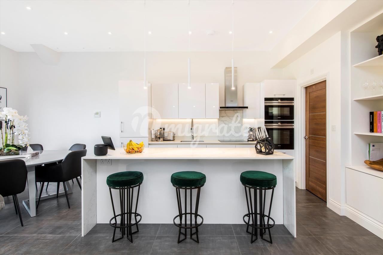На кухне есть бытовая техника высокого класса со столешницами из прессованного камня и островом, разделяющим стойку регистрации. Двустворчатые двери ведут на частную террасу, ведущую в общий сад. С полноценной отдельной утилитой разработчик действительно имеет дело с макетом. Основная спальня имеет от пола до потолка двустворчатые двери на террасу, полностью оборудованную ванную комнату и отдельную гардеробную.