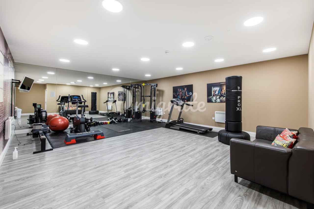 Комплекс был невероятно хорошо спроектирован: в подвале находится большой тренажерный зал, раздевалки, а также есть доступ к общему заднему саду и террасе.