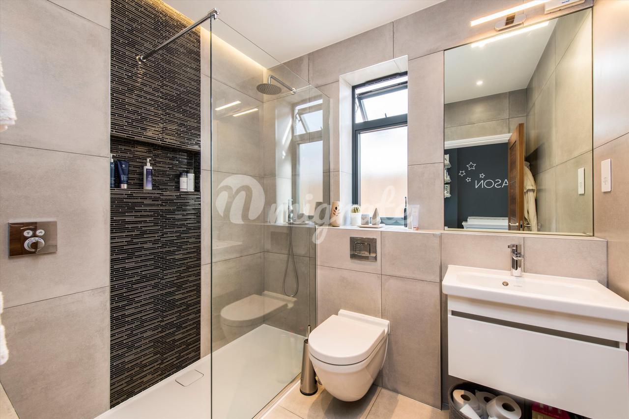 Существует еще вторая, большая спальня с двуспальной кроватью и полностью выложенная плиткой семейная ванная комната. Собственность имеет выделенное парковочное место и продается без цепи.