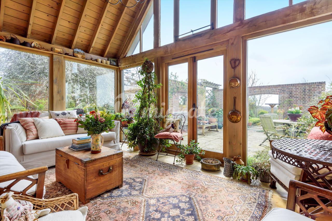 Главный дом был подвергнут масштабному проекту реконструкции около 20 лет назад, включая значительное расширение главного дома, чтобы обеспечить двухэтажную пристройку, а задний конюшенный блок был преобразован во второе жилище, известное как "Конюшни". Это идеальная покупка для больших семей, желающих иметь дополнительное жилье или получать доход за счет сдачи в аренду. Частные сады окружают как фермерский дом Flaxlands Manor, так и конюшни с собственным открытым садом, обнесенным стеной. Существует универсальный гараж на четыре машины. К каждому дому ведет собственная подъездная дорожка. Есть дополнительные возможности, если новый покупатель пожелает снова разделить их на два объекта недвижимости при условии получения соответствующих разрешений или даже развивать дальше. В общей сложности около 7 акров.