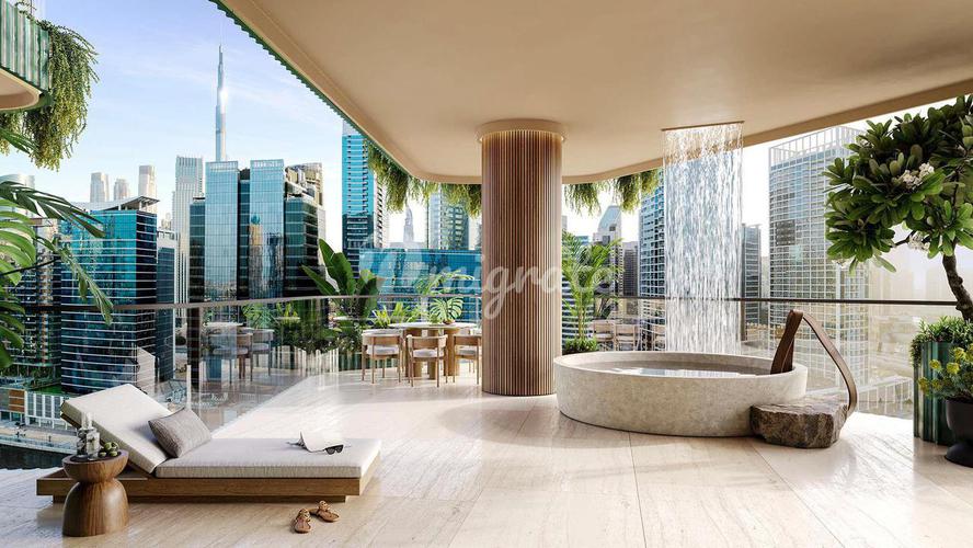 Современная высотная квартира с балконом. 4 спальни с 2 ванными комнатами, 3 ванные комнаты, просторная гостиная/столовая, полностью оборудованная кухня и комната для прислуги. Полноценное клубное оборудование. Доступно для продажи.
