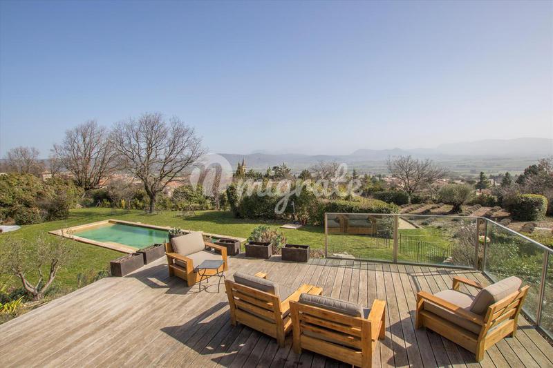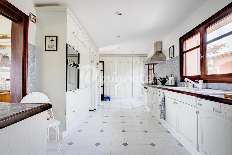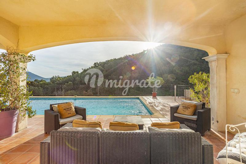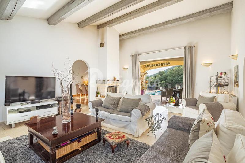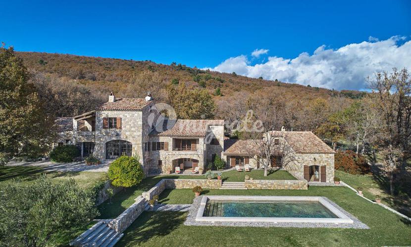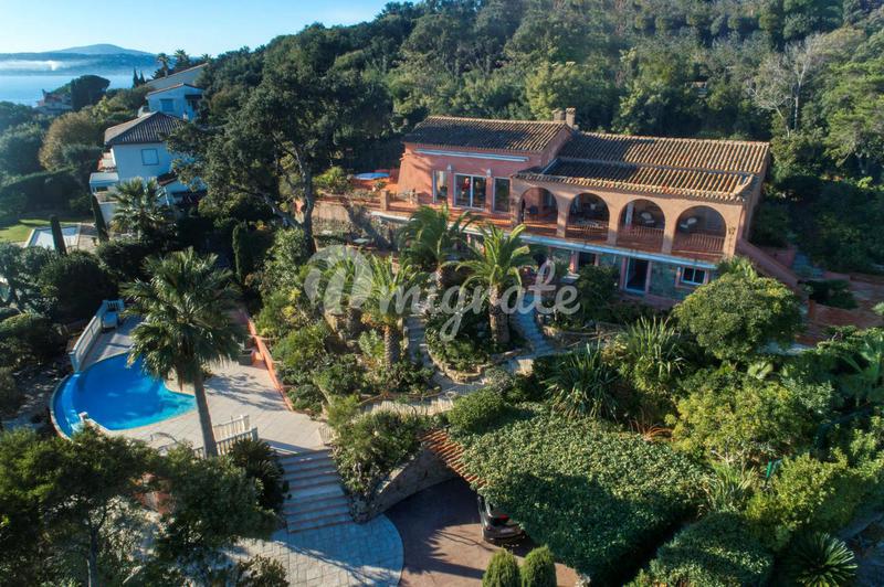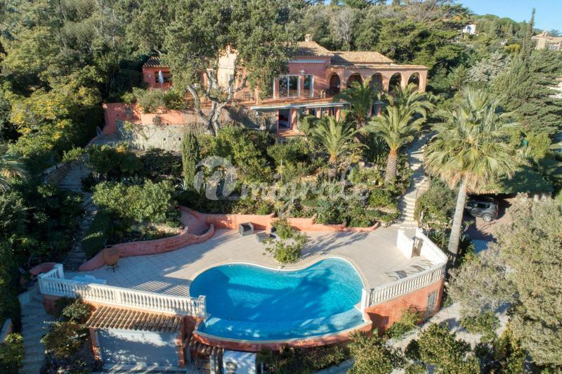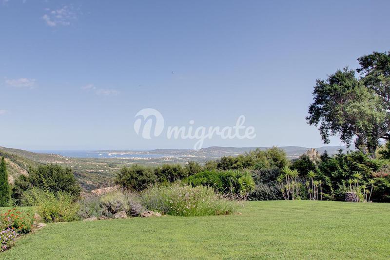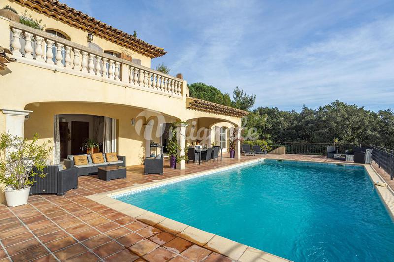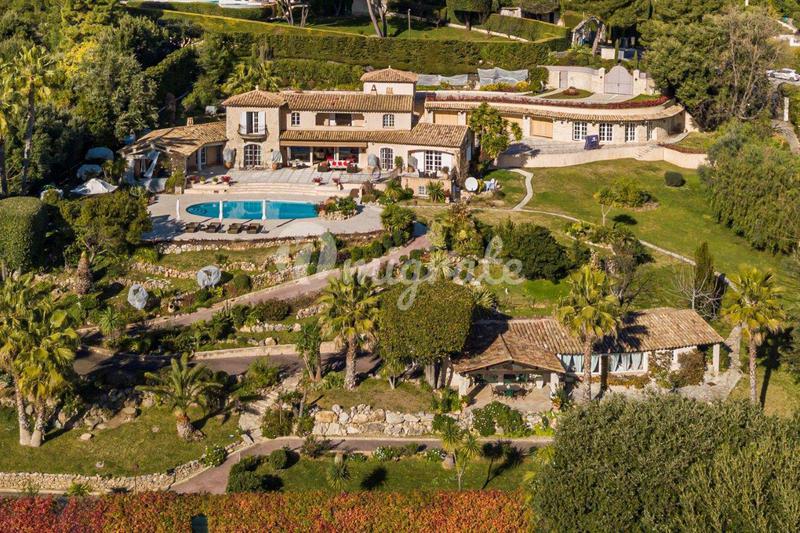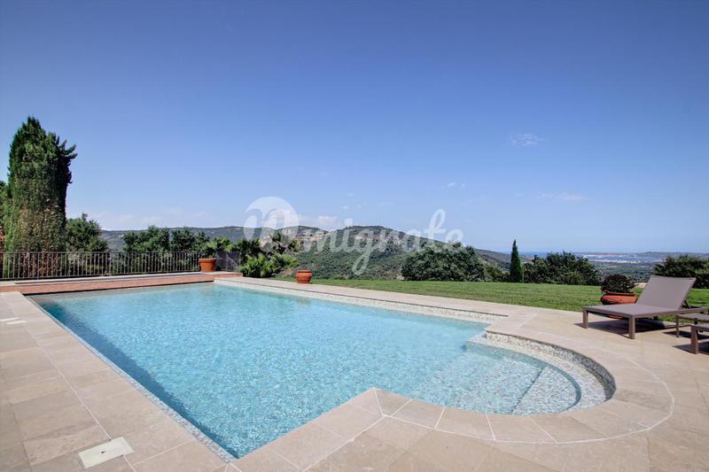 Продается вилла в великолепном командном месте, в двух шагах от средневековой деревни Гримо. Имущество с панорамным видом на залив Сен-Тропе включает в себя главную виллу в неопровансальском стиле, до
