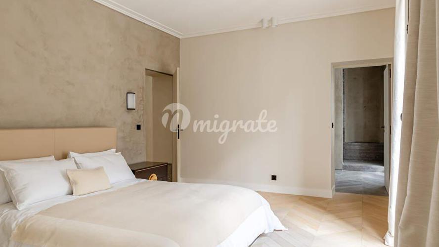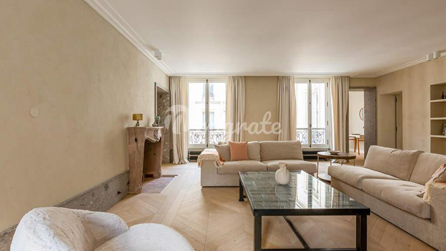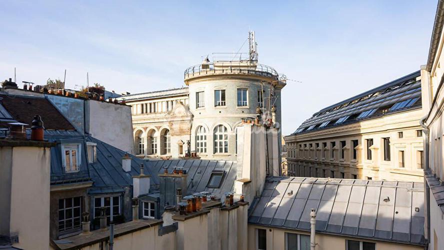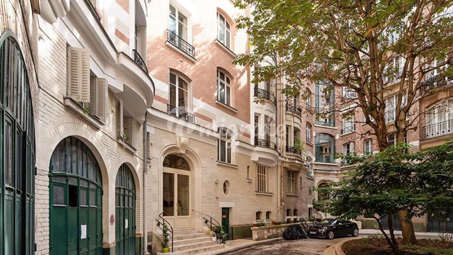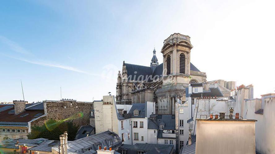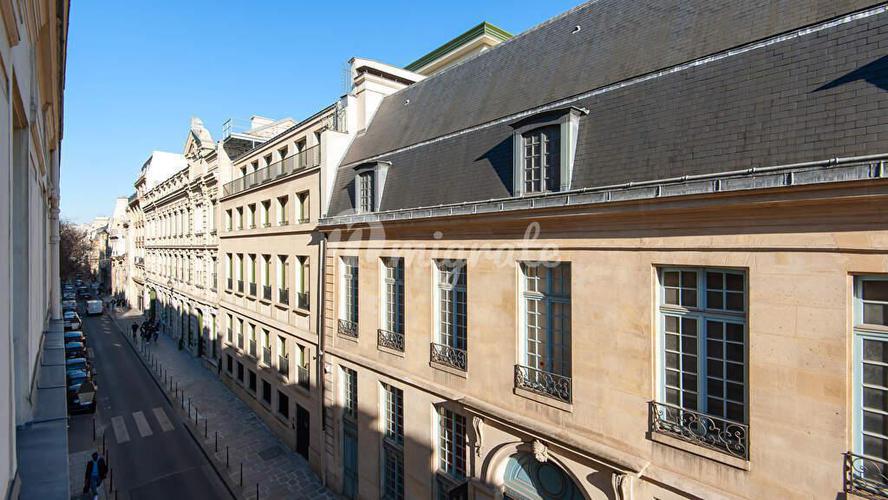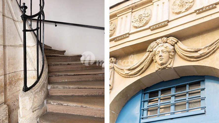 Rue des Archives, в самом сердце исторического квартала Марэ, в непосредственной близости от улицы Пастурель и магазинов улицы Бретань, на втором этаже старинного здания с видом на Музей охоты, проход