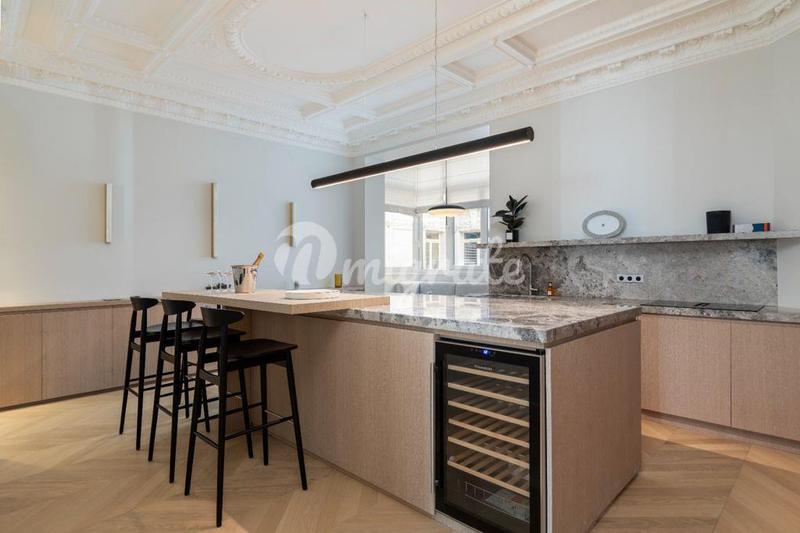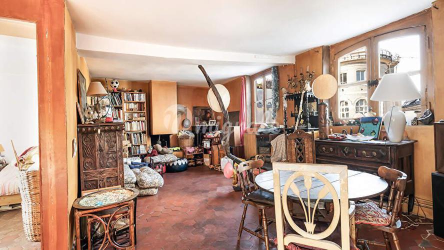 На пятом и последнем этаже здания 17 века, квартира площадью 84,08 м² пересекается с законом Карреза, полностью подлежащим ремонту. Он состоит из прихожей, гостиной площадью 36,91 кв.м., откуда открыв