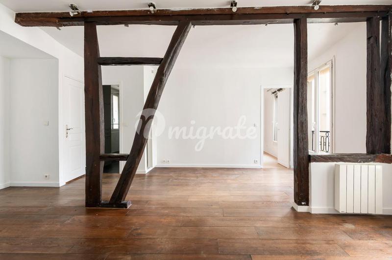 В непосредственной близости от rue de Bretagne и Marché des Enfants Rouges, на втором этаже ухоженного здания 18 века, очаровательная квартира Carrez Law площадью 44,65 м² с очень просторными (высотой