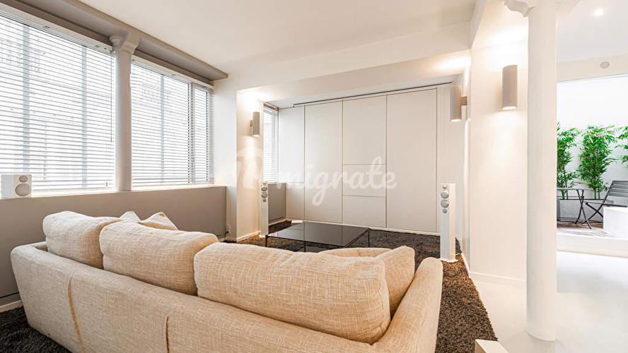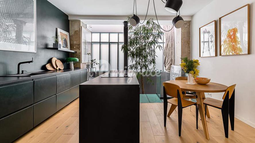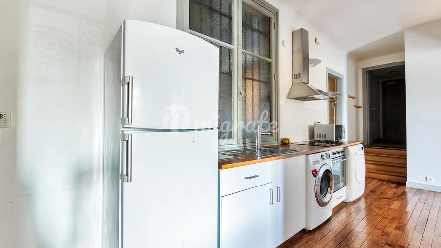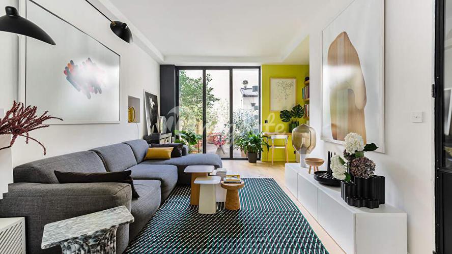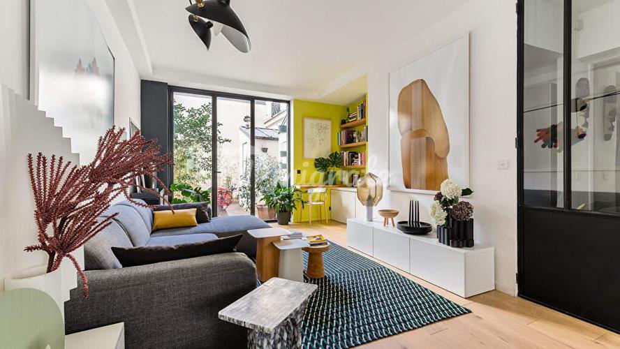 Идеально расположенный на тихой улице в самом сердце Abbesses. Тихая, красивая квартира в стиле лофт площадью 59,01 кв.м. по закону Карреза и 64 кв.м. на первом этаже ухоженного здания. Очень хороший
