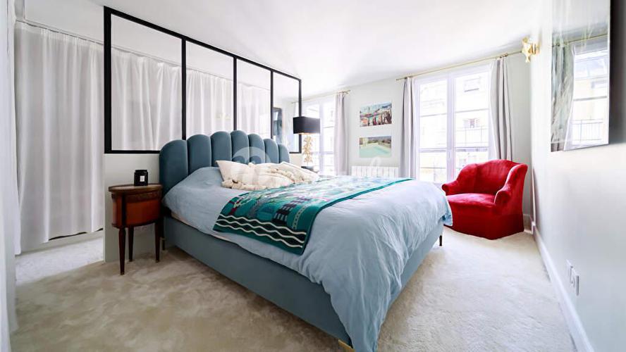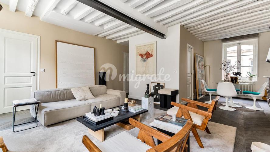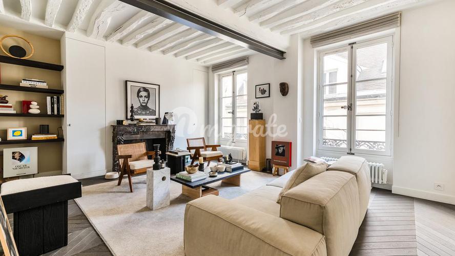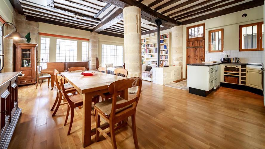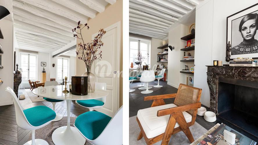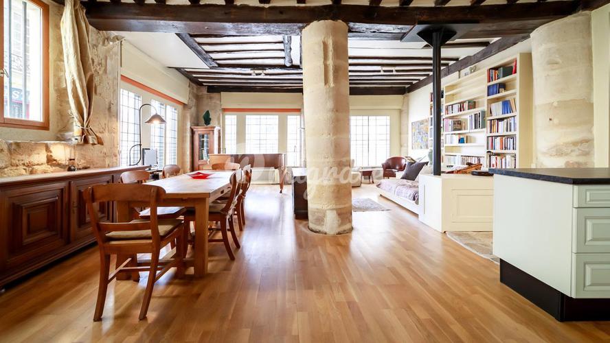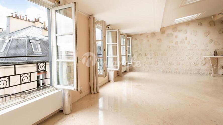 В самом сердце Парижа, между Лувром и Лез-Аль. Эта двухуровневая квартира, на верхних этажах (четвертый и пятый) на лифте до третьего, площадью 54 кв.м. Carrez находится в хорошем состоянии и имеет те