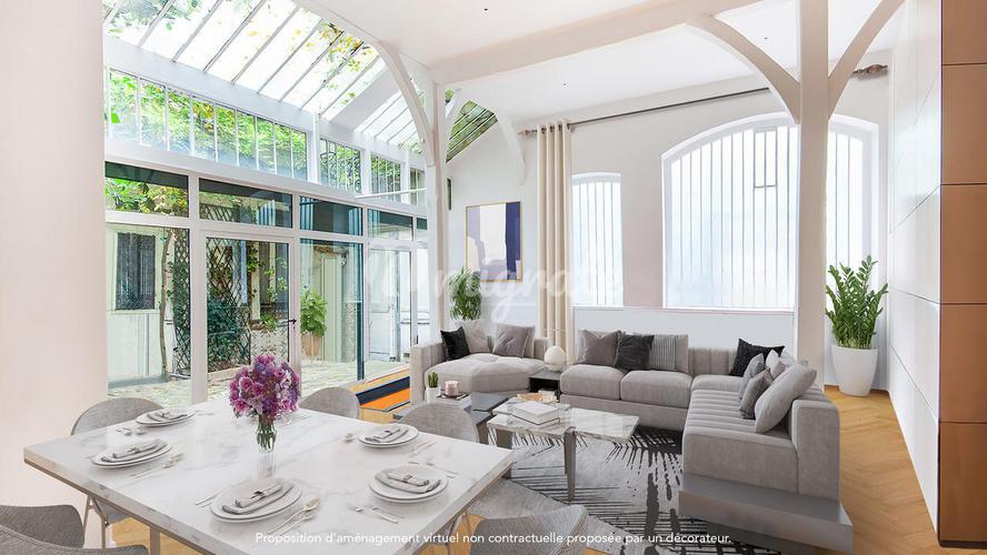 В очаровательном пешеходном переходе вечный лофт площадью 176,06 кв.м. Carrez Law. Переделанный архитектором 80-х годов, он имеет огромную гостиную с гостиной / гостиной, открытую кухню и столовую, бо