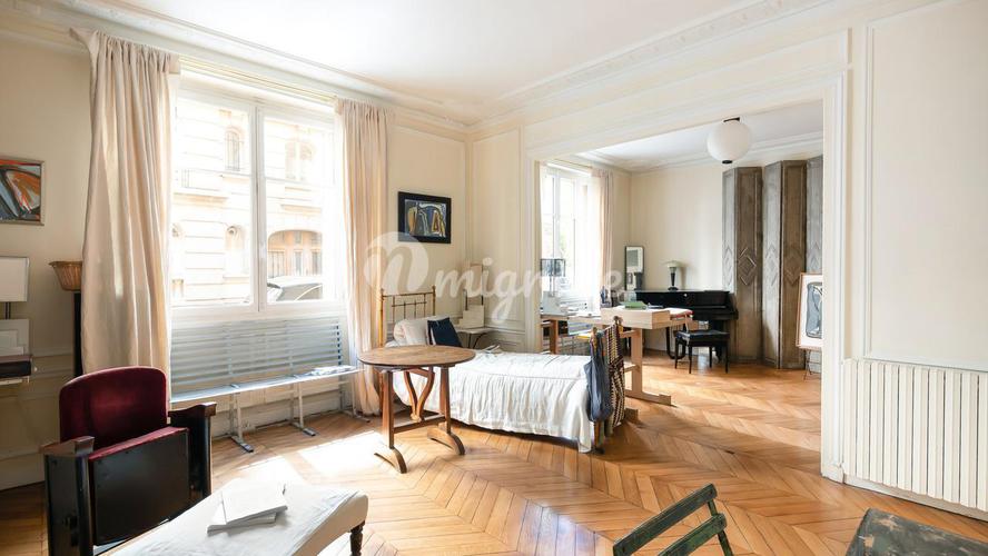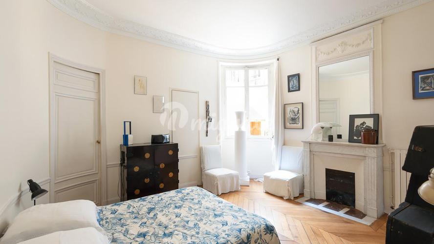 В Люксембургском саду, расположенном на проспекте, известном своим спокойствием и видом на деревья. Во дворе красивого пост-османовского дома, квартира на трех уровнях, с видом на юг, имеет отдельный