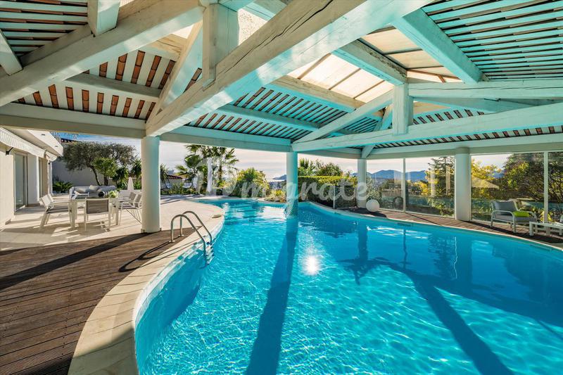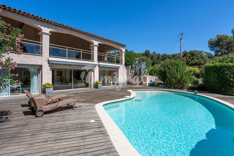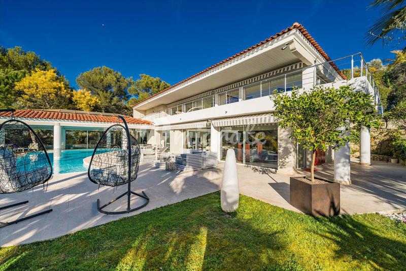 Эта вилла с 4 спальнями, расположенная в жилом районе Ле-Канне, располагает открытыми жилыми помещениями, выходящими на юго-запад и выходящими на большую террасу с бассейном и беспрепятственным видом