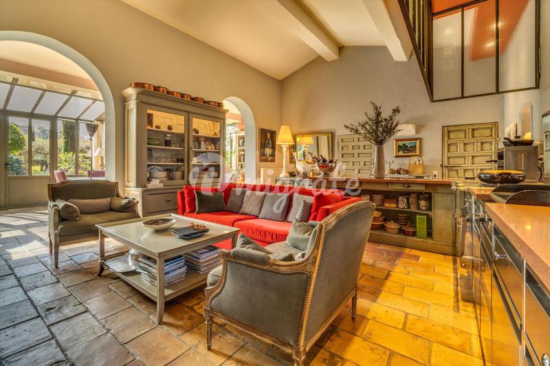 Имущество состоит из прихожей, гостевой гардеробной, большой гостиной, столовой и оборудованной кухни, выходящей на большую южную террасу с видом на сад, 4 спален и 2 ванных комнат (возможность создат