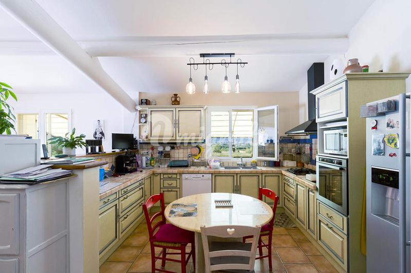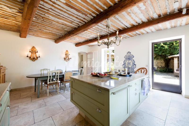 Дом состоит из кухни с большой столовой, дополненной чайной комнатой. Также на первом этаже находится ТВ-зал с видом на Люберон, за которым следует гостевая спальня с отдельным туалетом и ванной комна