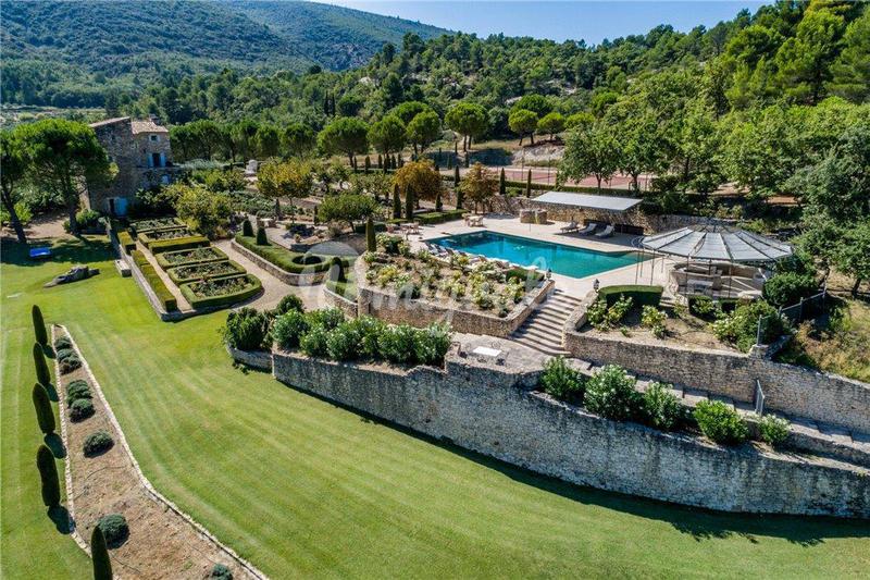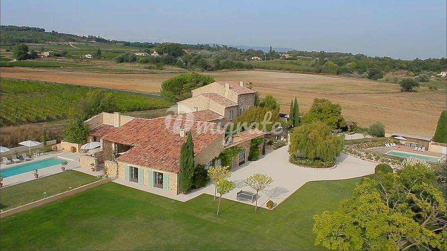 Роскошное поместье расположено в Бонньё в регионе Прованс на 12,5 га земли, которые разделены на Французский сад, оливковую рощу, виноградники и лес. На участке расположен бассейн и теннисный корт. Ви