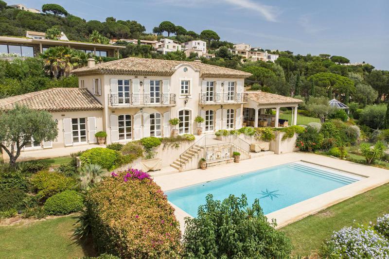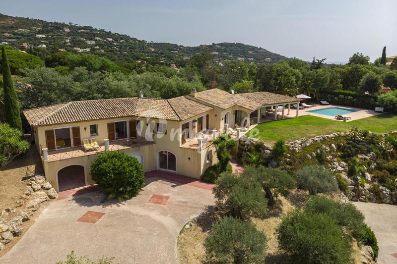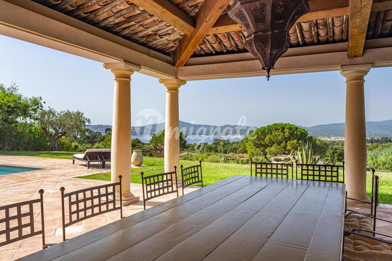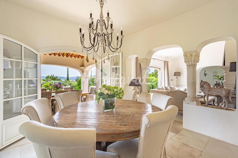 Продается вилла в великолепном командном месте, в двух шагах от средневековой деревни Гримо. Имущество с панорамным видом на залив Сен-Тропе включает в себя главную виллу в неопровансальском стиле, до