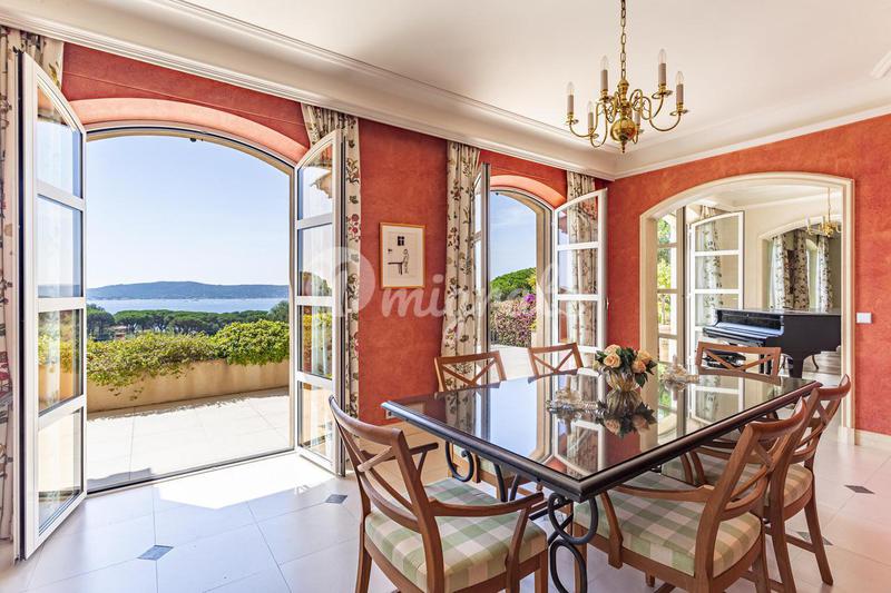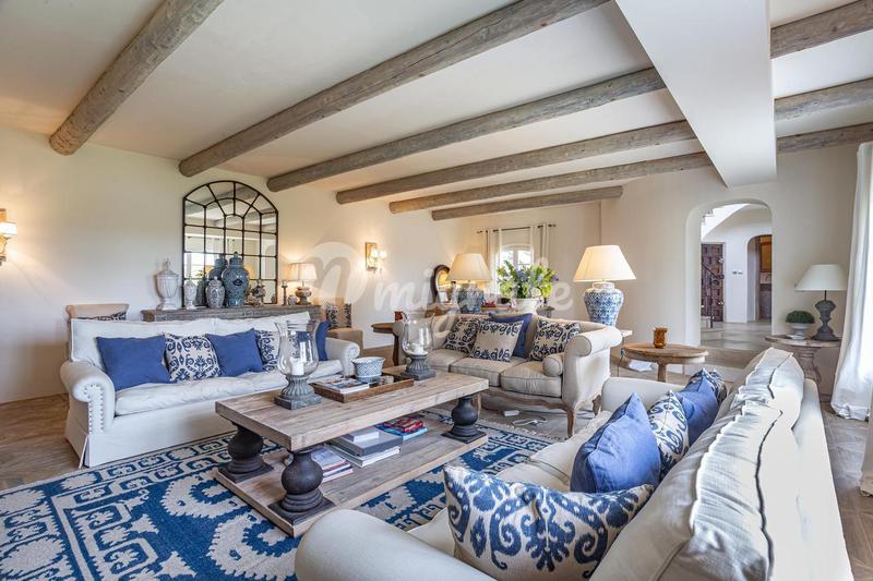 Прованская вилла с видами на море и побережье Сен-Тропе расположена в Гримо. Вилла площадью 232 кв. м состоит из двух этажей. Первый этаж включает прихожую, просторную гостиную, отдельную кухню, столо