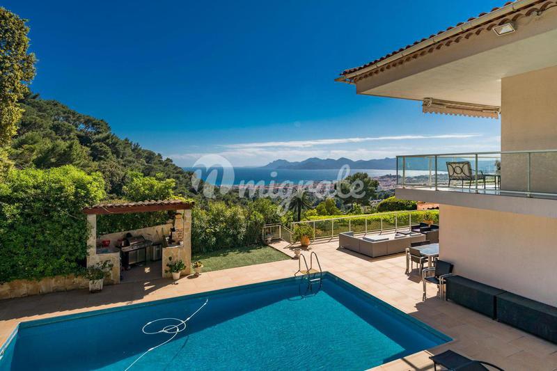 Эта большая вилла, расположенная на высотах Каннского калифорнийского залива, предлагает около 350 кв.м жилья на трех уровнях. Дом предлагает большие объемы, в общей сложности шесть спален на главной