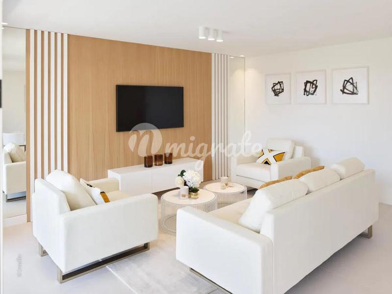 Расположен в роскошной резиденции в закрытом парке с бассейном, теннисом, тренажерным залом и круглосуточным консьержем. Эта квартира имеет прекрасный вид на море и парк с террасой, выходящей на южную