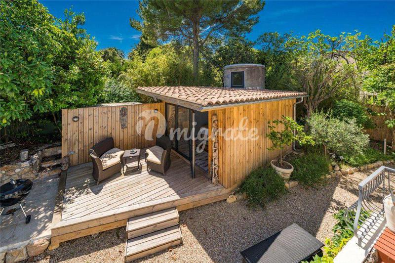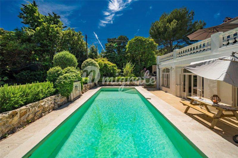 Очаровательная вилла с бассейном расположена в Кап д’Антибе. Первый этаж включает просторную прихожую, гостевой санузел, просторную кухню открытого плана с террасой, просторную гостиную с камином, 2 с