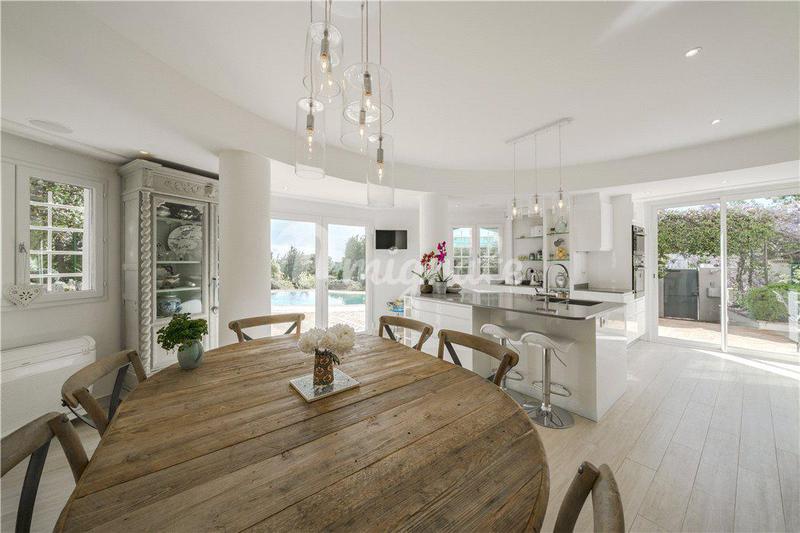 Очаровательная вилла расположена в охраняемом поселке, рядом со знаменитым пляжем в Кап д’Антибе. С виллы открываются роскошные виды на море. Основная вилла площадью 560 кв. м включает прихожую, кухню