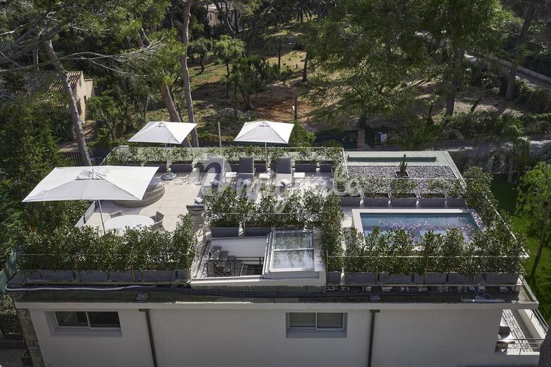 Современная двухуровневая вилла площадью 220 м² расположена в восточной части Мыса Антиб. Вилла включает гостиную площадью 95 м², совмещенную со столовой, 5 спален, 5 ванных комнат, полностью оборудов
