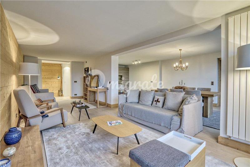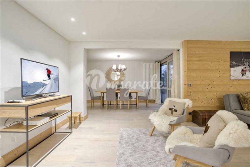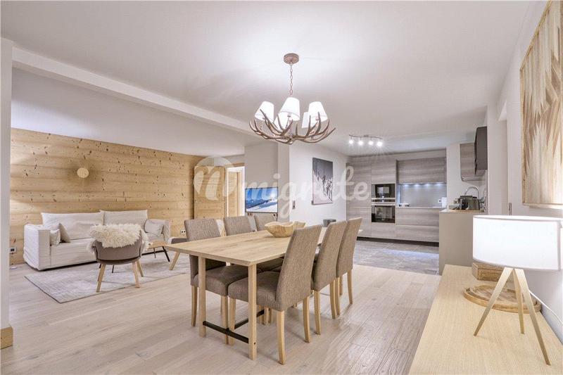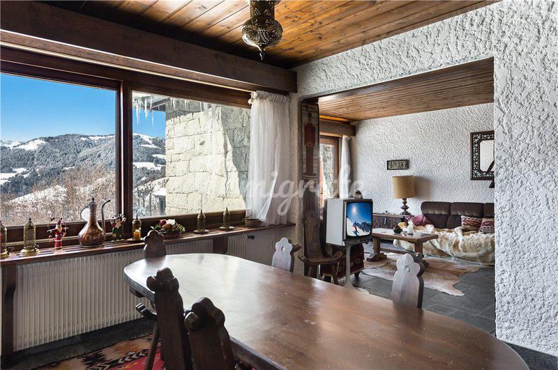 Апартаменты расположены в районе Мон д‘Арбуа в Межеве, напротив лыжных склонов. Апартаменты занимают 2 первых этажа. Первый этаж включает гостиную с полностью оснащенной кухней и балконом, столовую, в