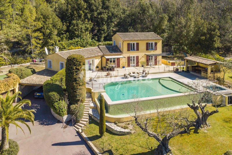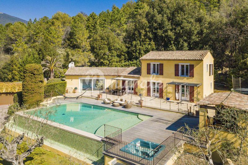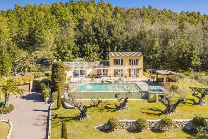 Уникальное прованское поместье с видами на море расположено в Сен-Поль-де-Ванс, в закрытом охраняемом комплексе. Поместье включает основной дом, гостевой дом, домик для охраны и коттедж для персонала.
