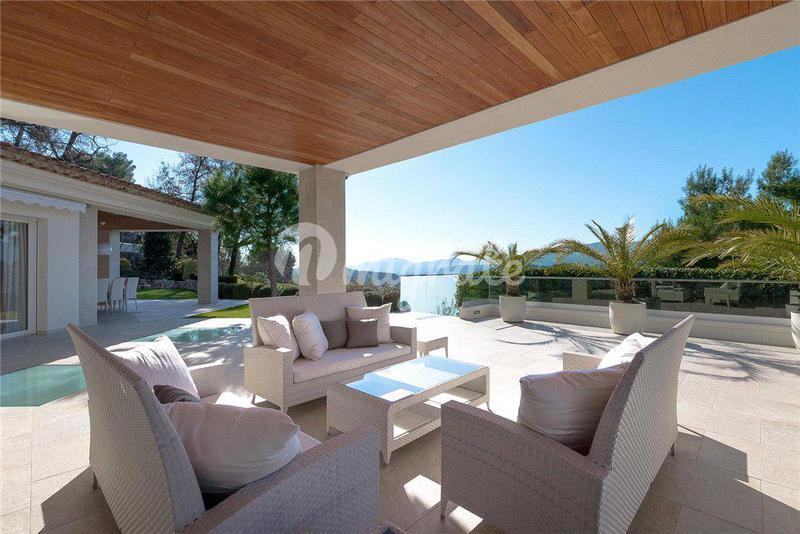 Роскошная ультрасовременная вилла с видами на Лазурное побережье расположена в закрытом охраняемом районе в Мужен. Вилла включает шесть спален, пять ванных комнат, полностью оснащенную кухню, уличную