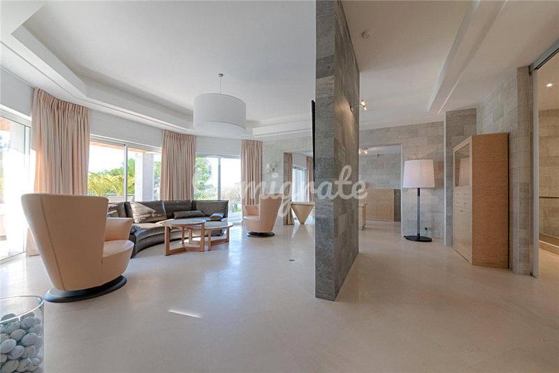 Очень хорошо спроектированная зона приема этой виллы ведет, с одной стороны, в красивую гостиную открытой планировки с высокими потолками и большими раздвижными эркерами. Прямо впереди находится элега