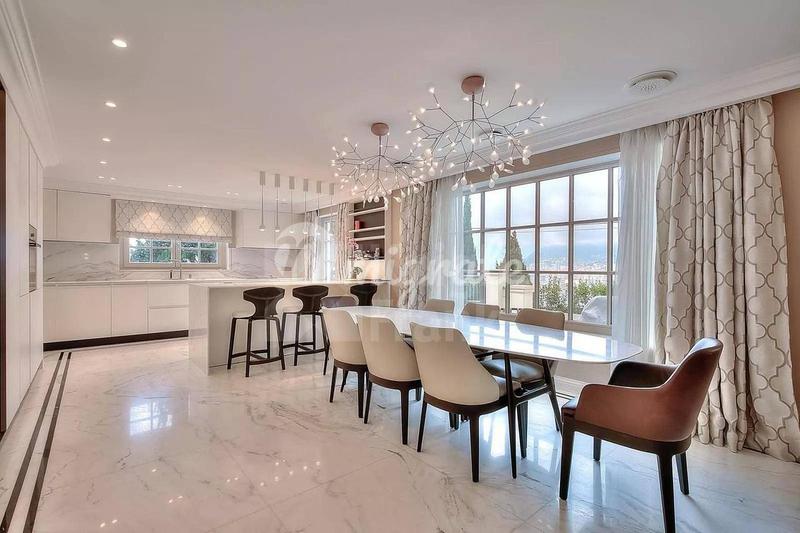 Вилла с выходом к частному песчаному пляжу, открывающая панорамный вид на море и Альпы, расположена на восточной стороне мыса Антиб. Вилла площадью 150 кв. м, расположенная на участке в 842 кв. м, нах