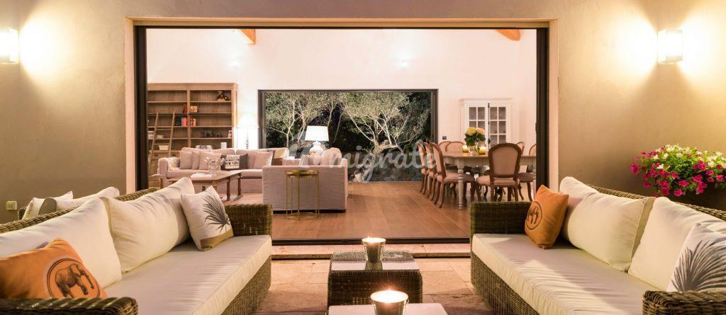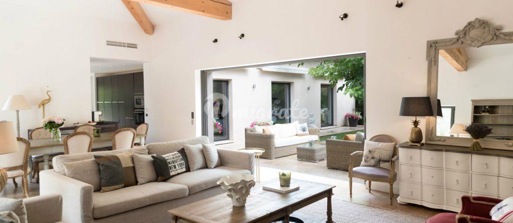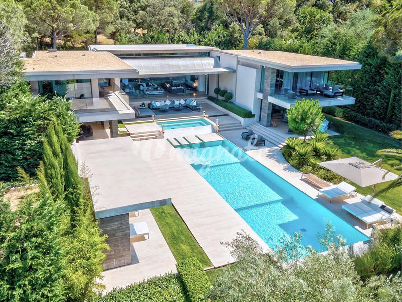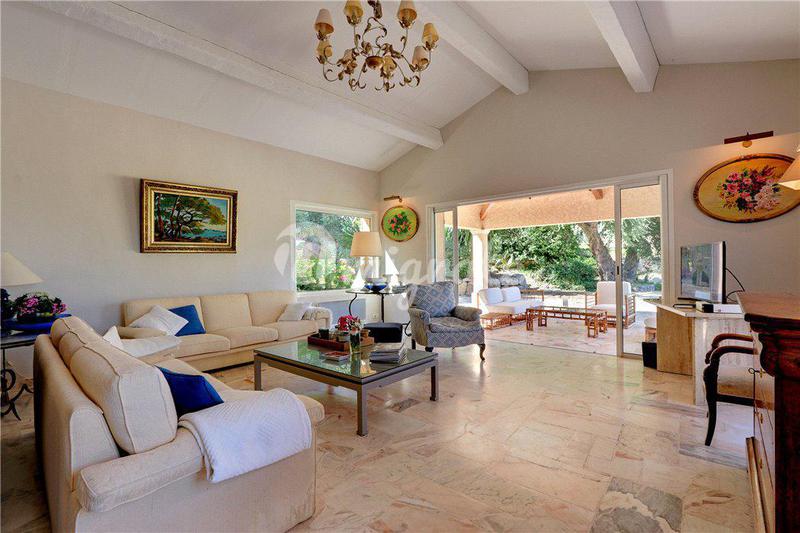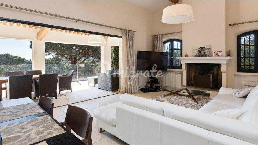 Вилла расположена во французской коммуне Раматюель на Лазурном побережье, в 700 метрах от роскошного пляжа Сен-Тропе – Пампелон. На первом этаже находится гостиная, совмещенная со столовой, полностью