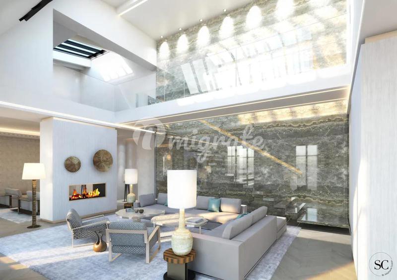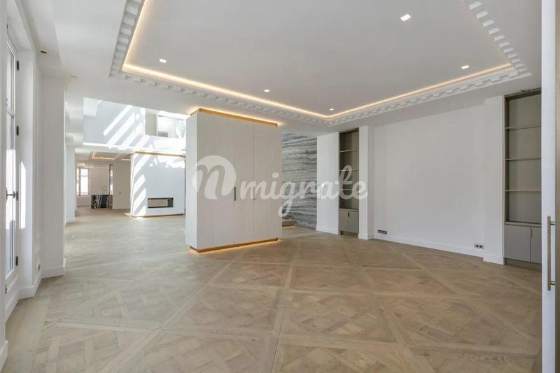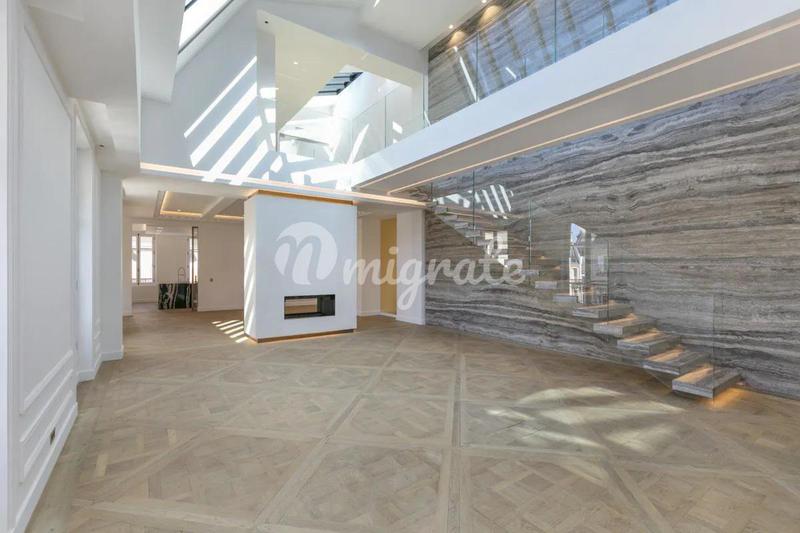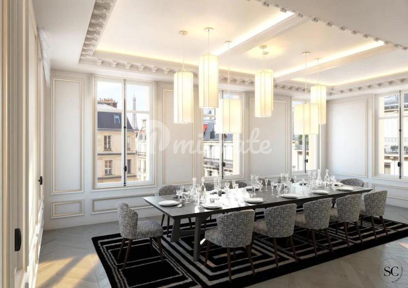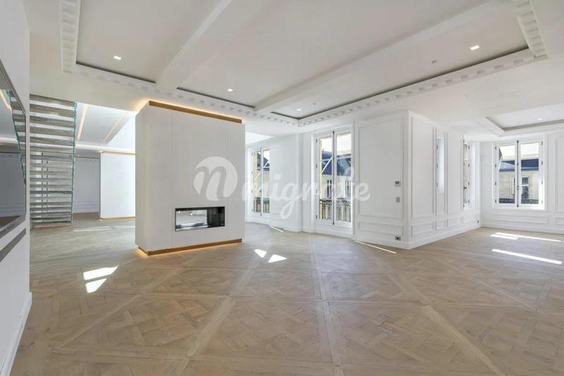 Апартаменты от известного дизайнера расположены в 8 округе Парижа и включают в себя прихожую, гостиную с великолепными стеклянными крышами и потолками высотой 6 м, столовую, оборудованную кухню, 3 спа