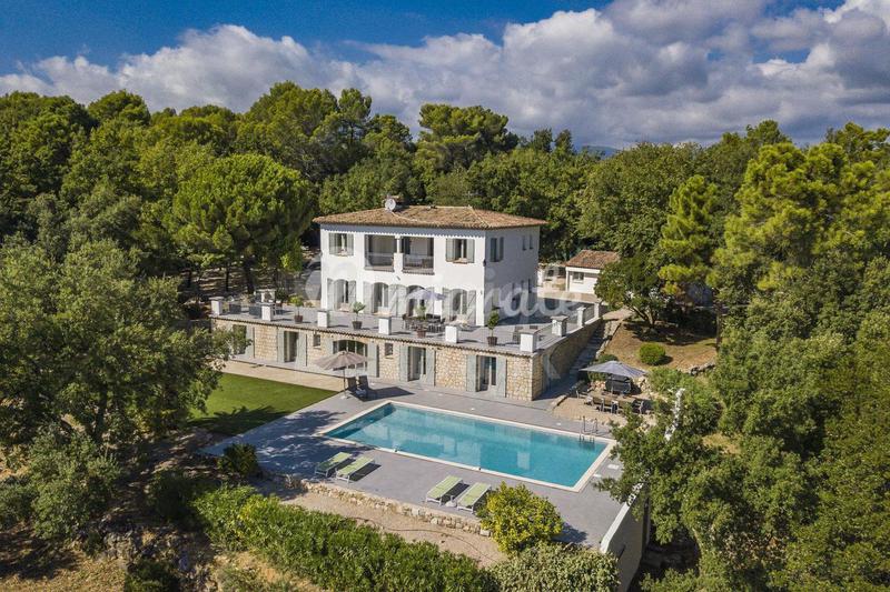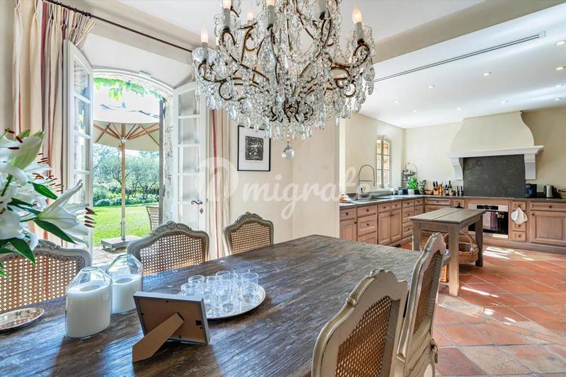 Прекрасная вилла площадью 260 кв. м расположена среди живописного леса и оливковой рощи в Вальбонн. На первом этаже расположена просторная гостиная, полностью оснащенная кухня с выходом на террасу и п