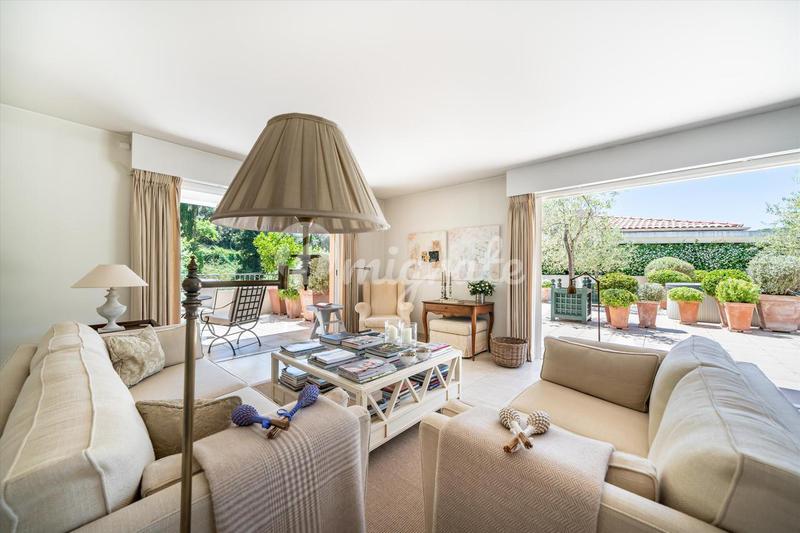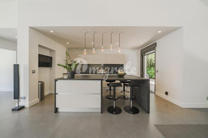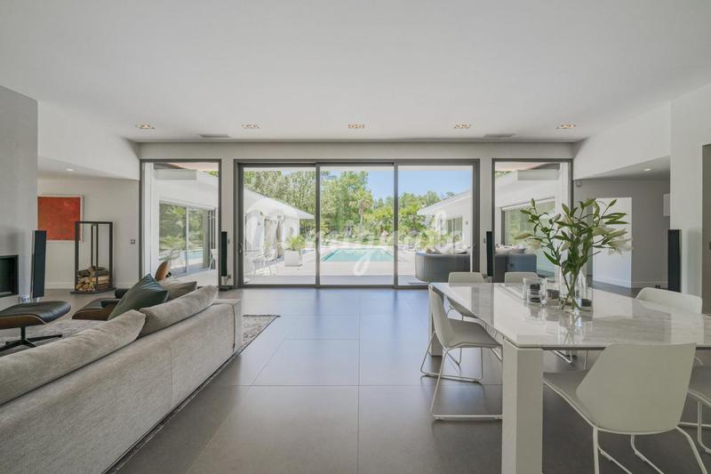 Вилла имеет жилую площадь около 440 кв.м., включая отдельную студию и закрытый гараж на четыре машины. После входа через парадную дверь эта светлая вилла предлагает холл, двойную гостиную с камином, с