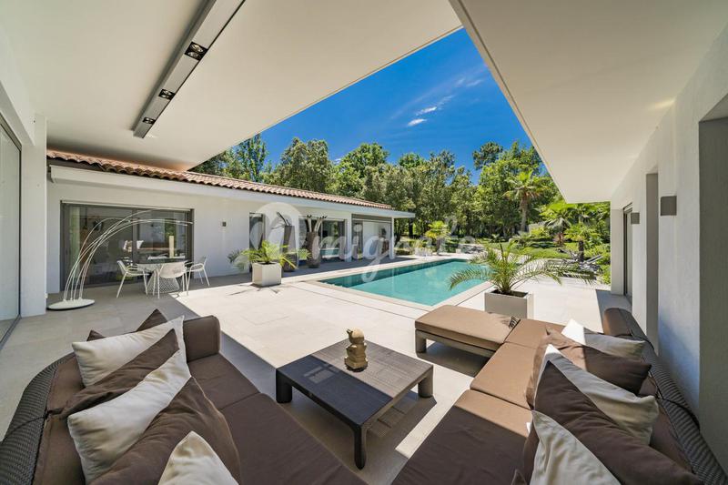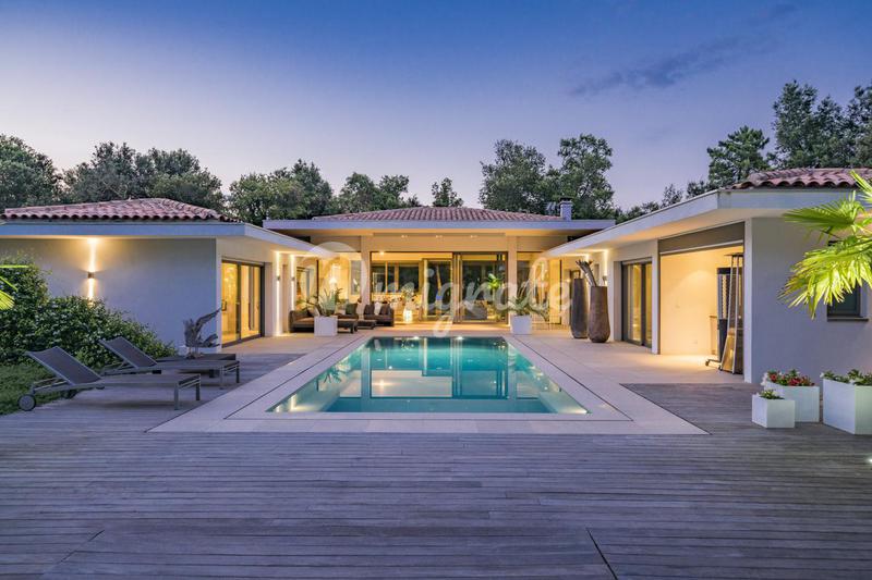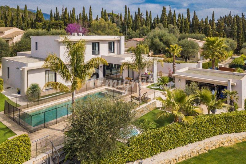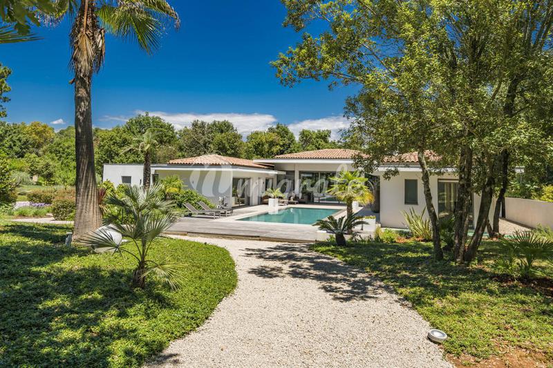 Элегантная вилла, построенная в 2006 году, расположена в городе Вальбонн на Лазурном побережье. В ландшафтном саду находятся террасы, бассейн и детские игровые зоны. Вилла площадью 240 кв. м включает