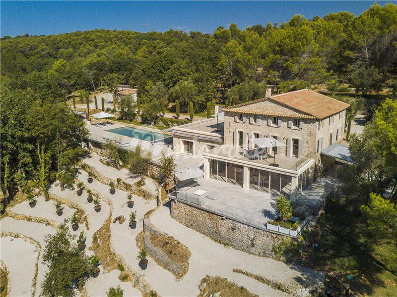 Роскошное поместье с панорамными видами расположено в городе Вальбонн. Поместье включает полностью отреставрированный основной дом, гостевой дом и домик у бассейна. На участке также расположен бассейн
