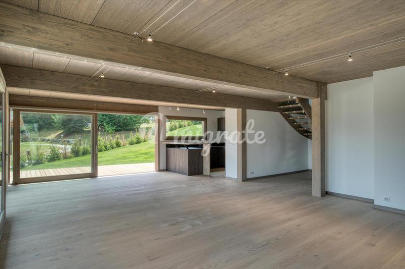 Расположенное на большом участке площадью 1749 м², шале было полностью отремонтировано и расширено в 2009 году, чтобы создать солидное шале с гостиной открытой планировки и большими террасами по обеим