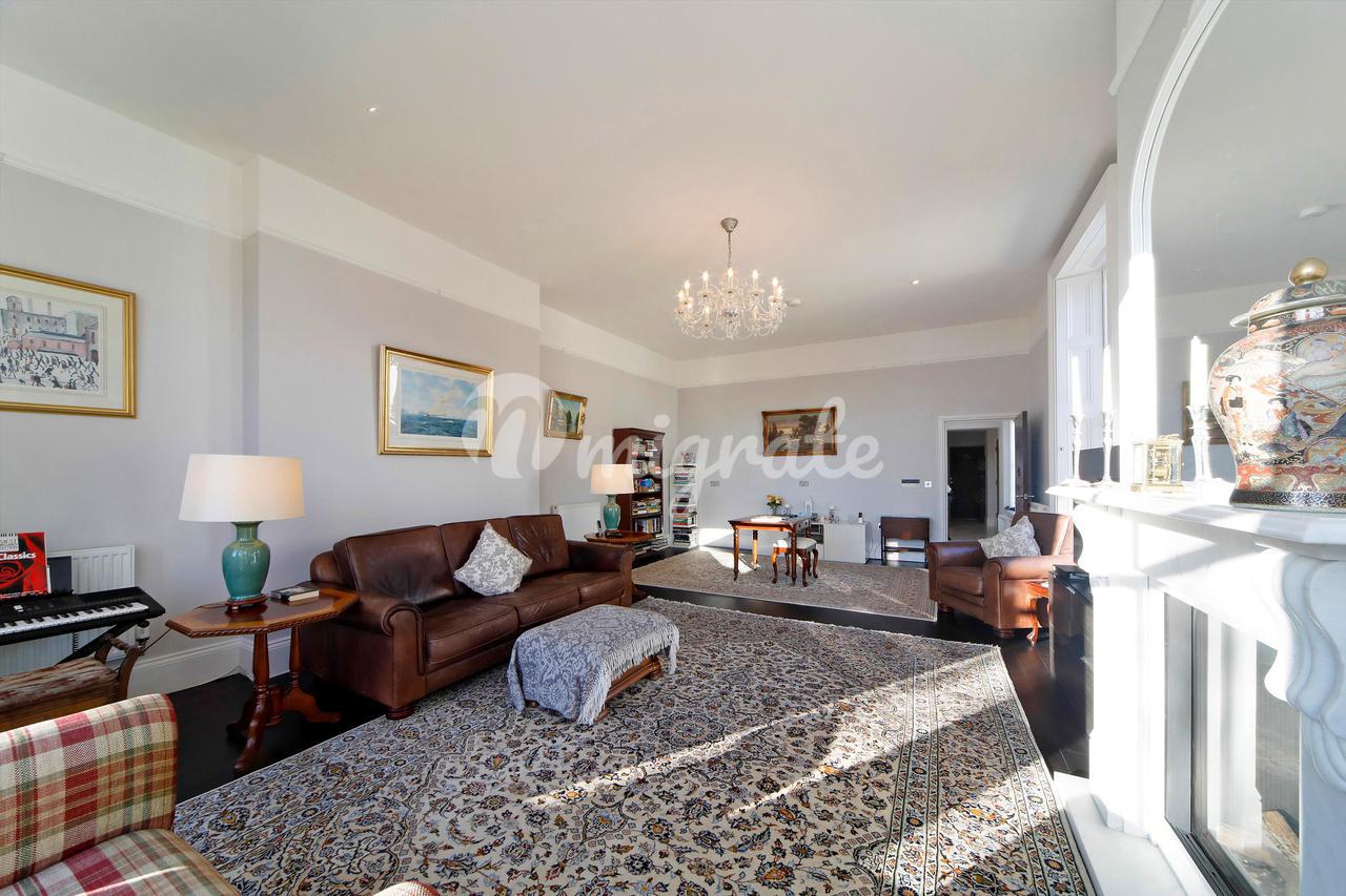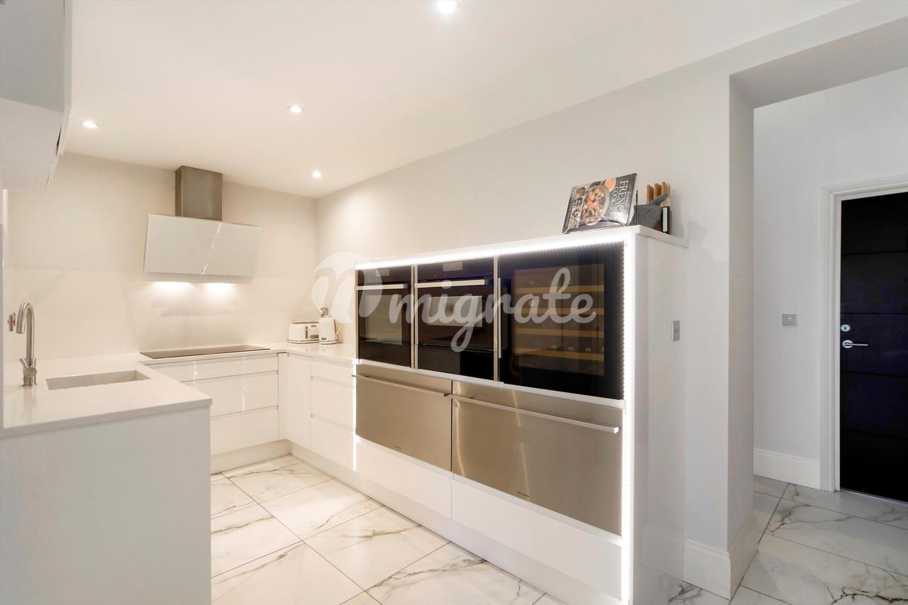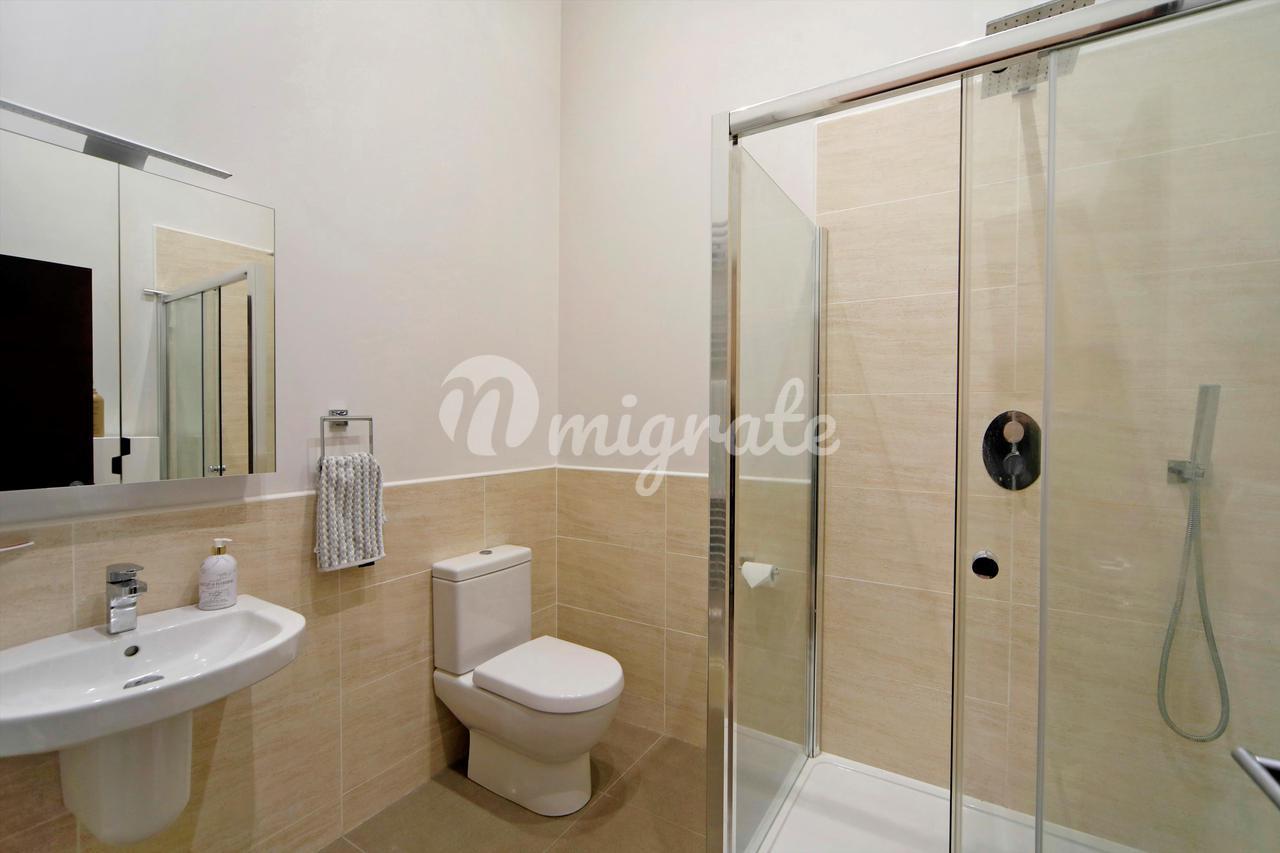 Эта великолепная квартира на первом этаже имеет площадь чуть менее 1300 кв. м. и роскошную отделку. Вход ведет прямо в хорошо оборудованную современную кухню со встроенной техникой и набором для хранения вещей. В стороне от кухни и прихожей находится главная гостиная, которая имеет открытую планировку и объединяет гостиную и столовую. В квартире также есть ряд встроенных шкафов и место для стирки и сушки. Есть две большие спальни, каждая из которых имеет ванную комнату. Снаружи есть ворота с электроприводом и два тандемных парковочных места сбоку от здания.