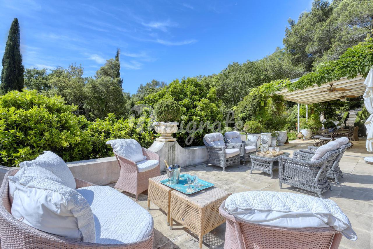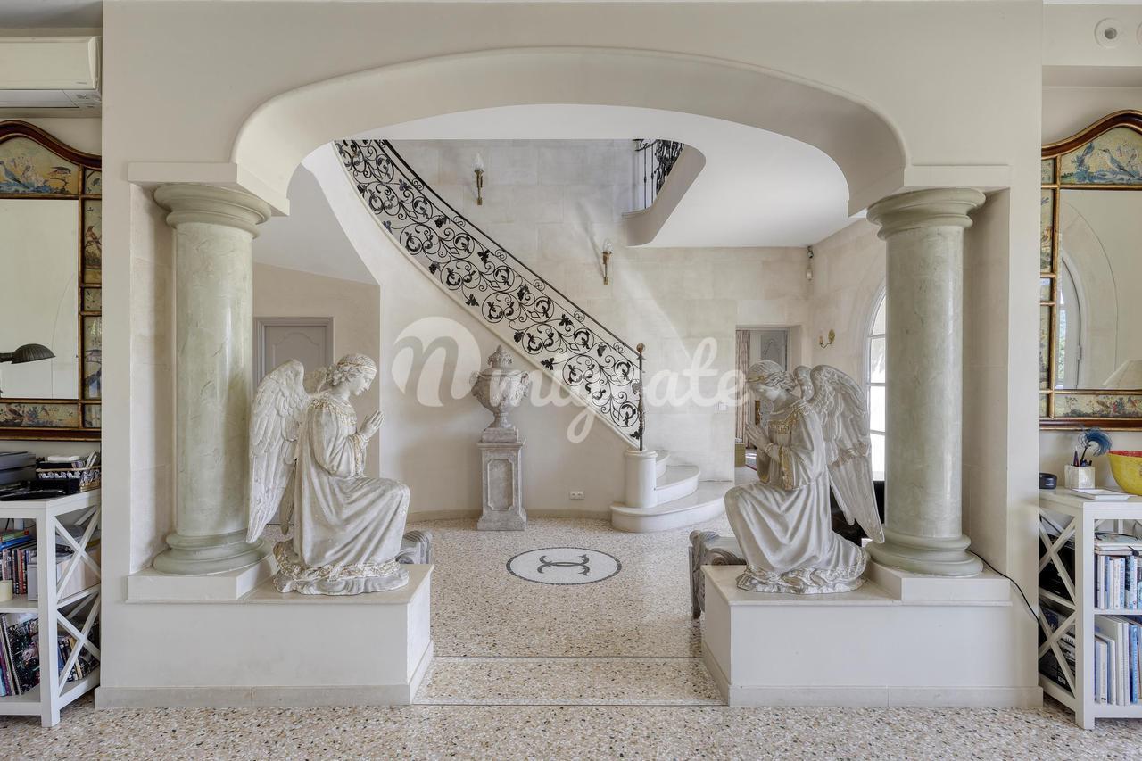 Прихожая, зона отдыха / гостинная, полностью оборудованная кухня, четыре спальни со смежными ванными комнатами и подсобное помещение / прачечная. Дом расположен в частном саду площадью около 6000 кв.м., который окружен лесом и виноградными лозами, а также располагает частным пейзажным бассейном с морской водой и несколькими террасами.