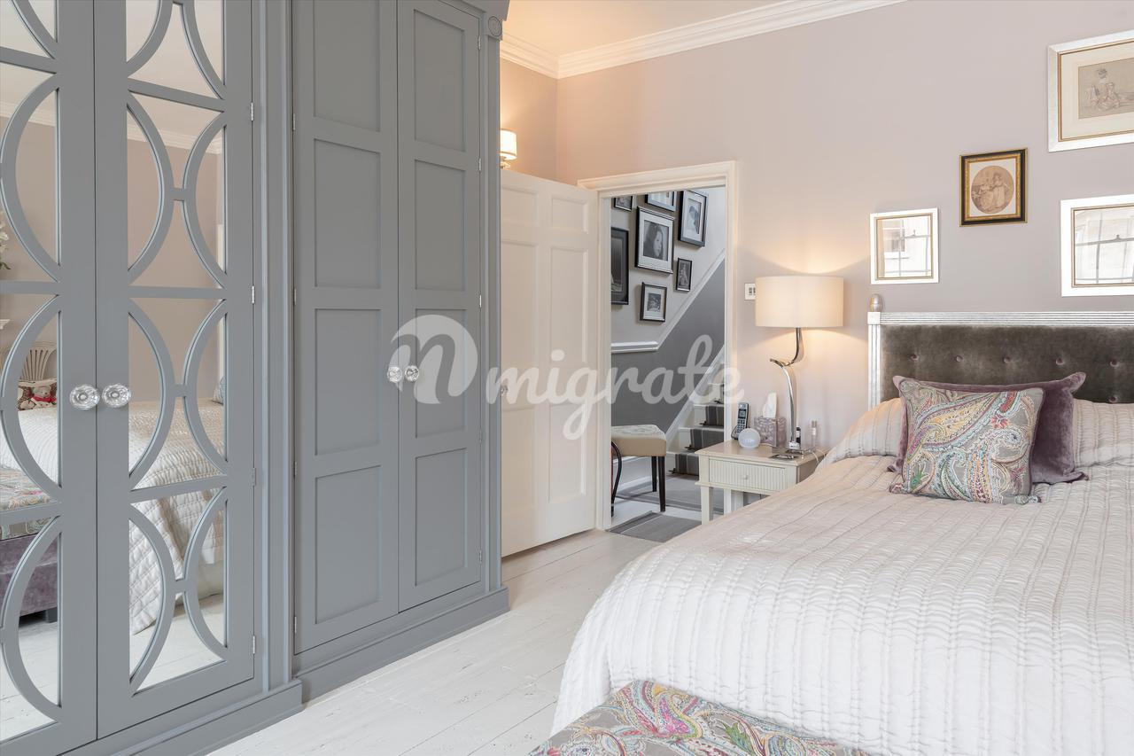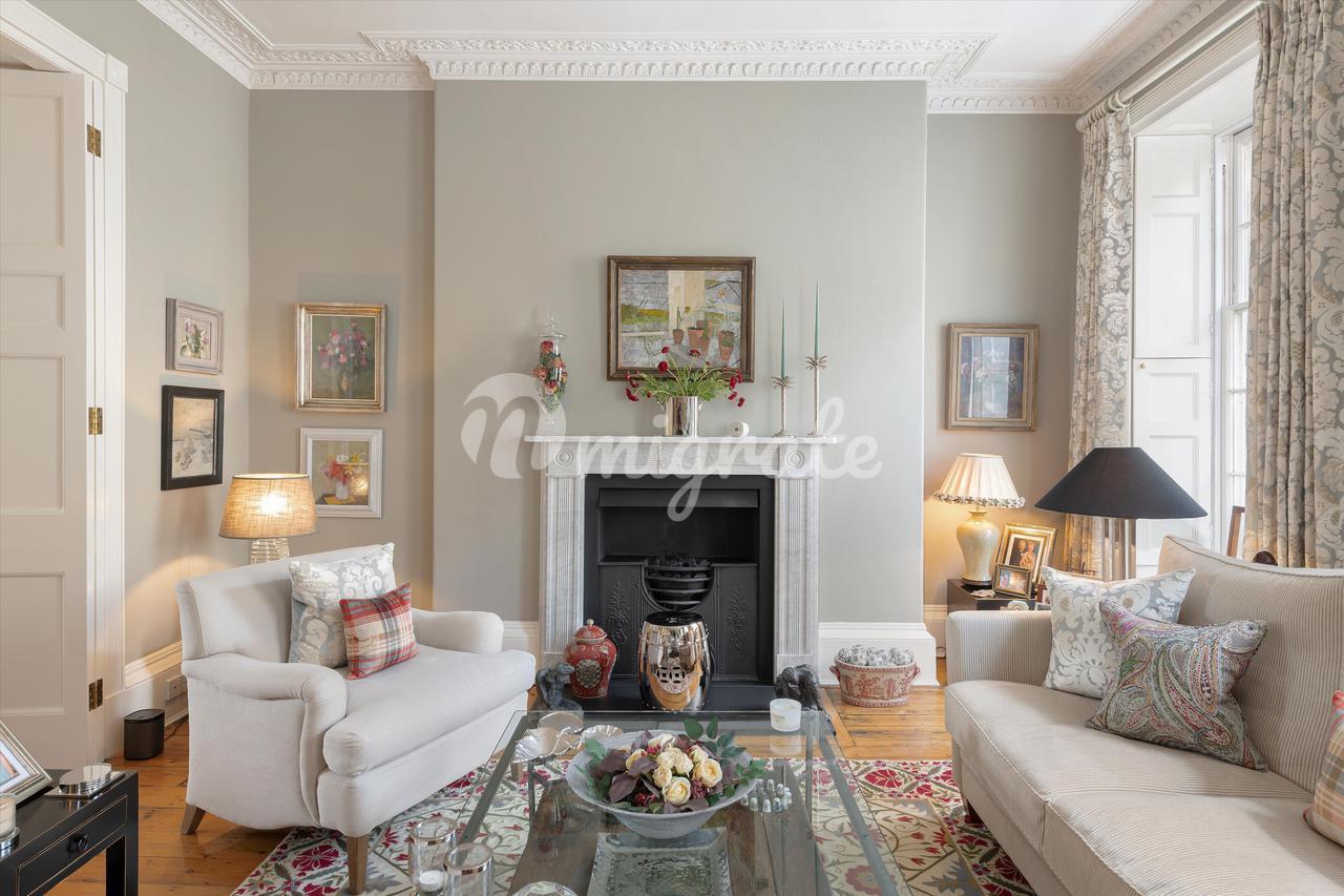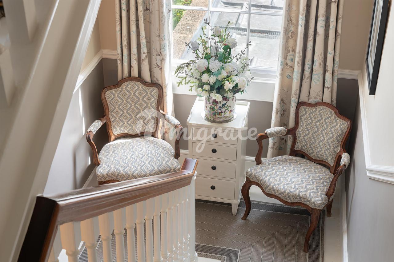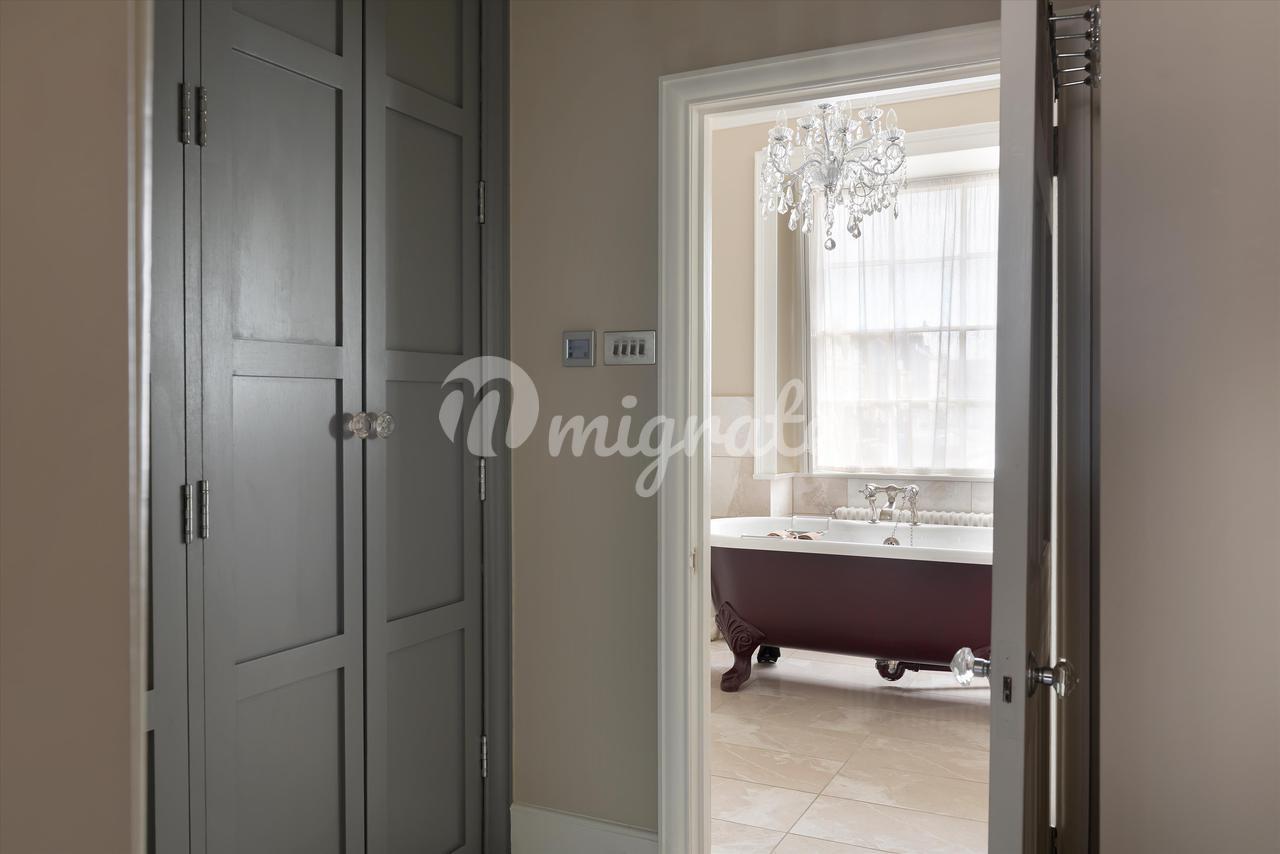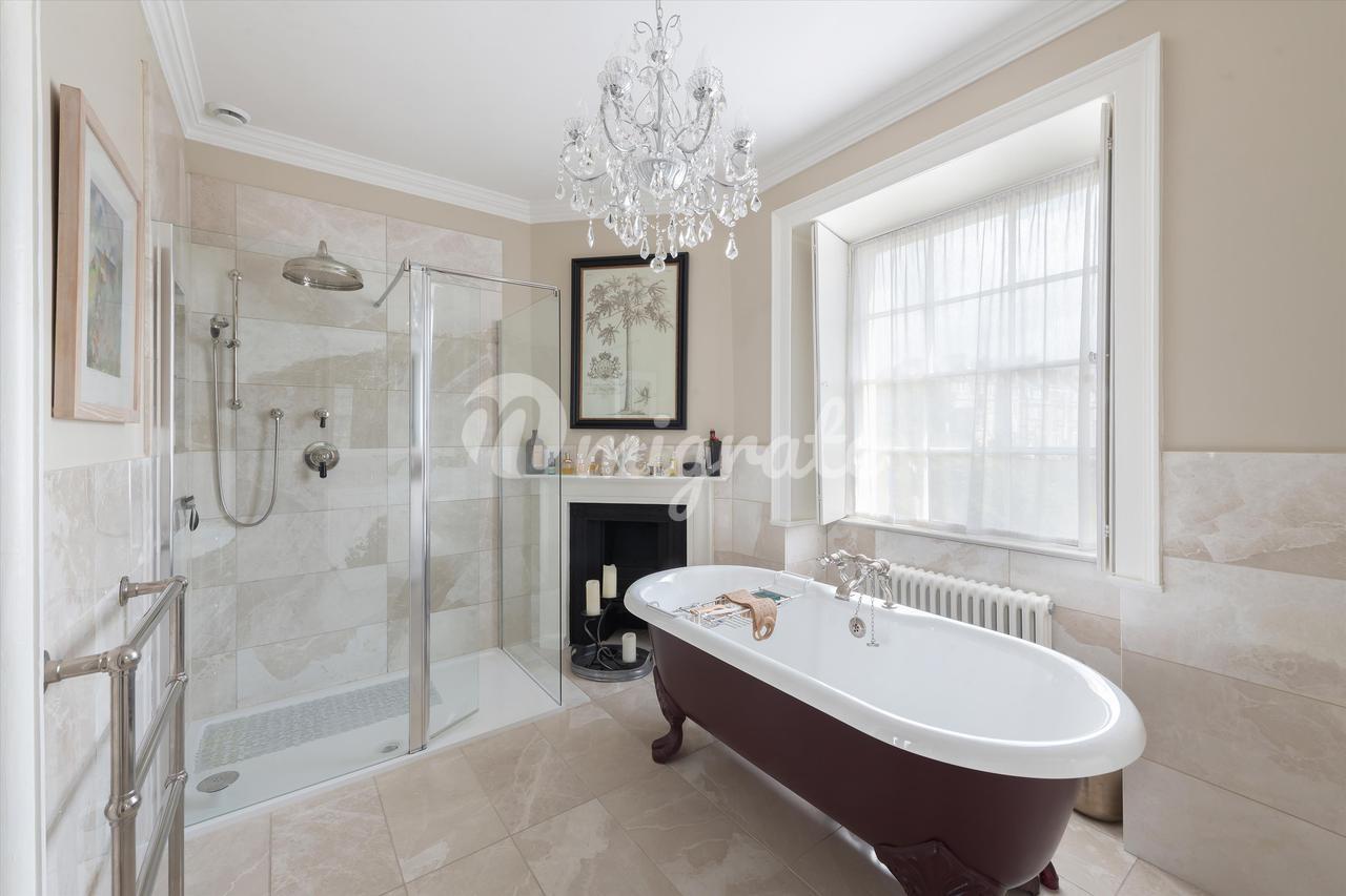 На третьем этаже есть еще три спальни – все больших размеров – и семейная ванная комната. В этом красивом доме есть качественная фурнитура и светильники, люстры, ковры и напольные покрытия, которые подобают дому в георгианском стиле, занесенному в список памятников архитектуры I степени.