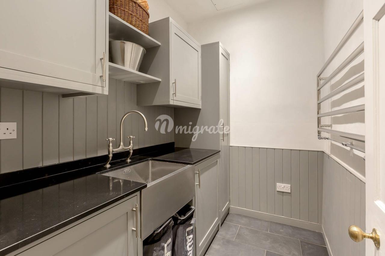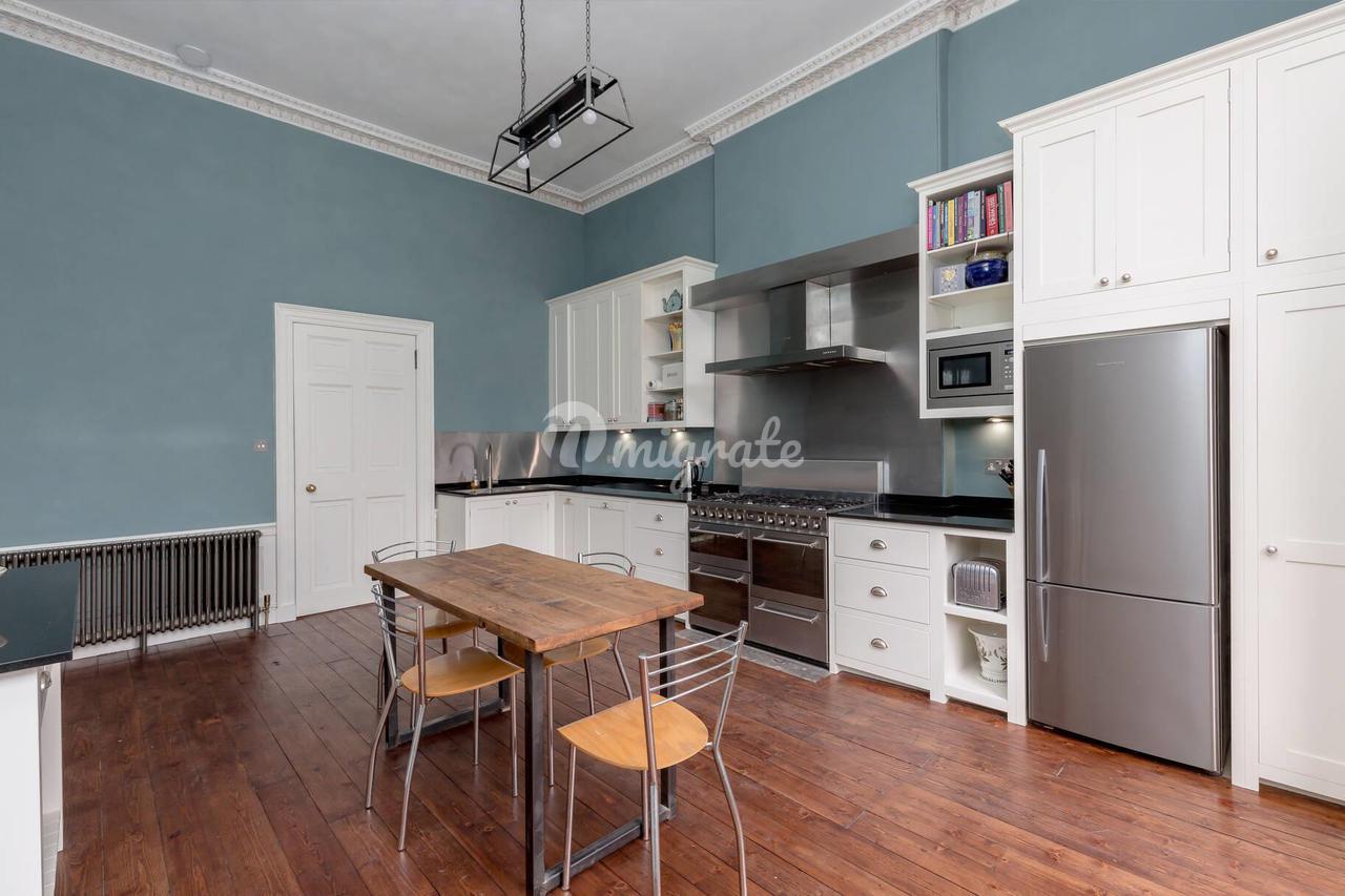 Большая кухня от Devol оснащена бытовой техникой Smeg, Siemens, Neff, Fisher & Paykel, а из окон открывается прекрасный вид на сад. Пятая спальня в настоящее время используется в качестве кабинета. На этаже есть туалет.