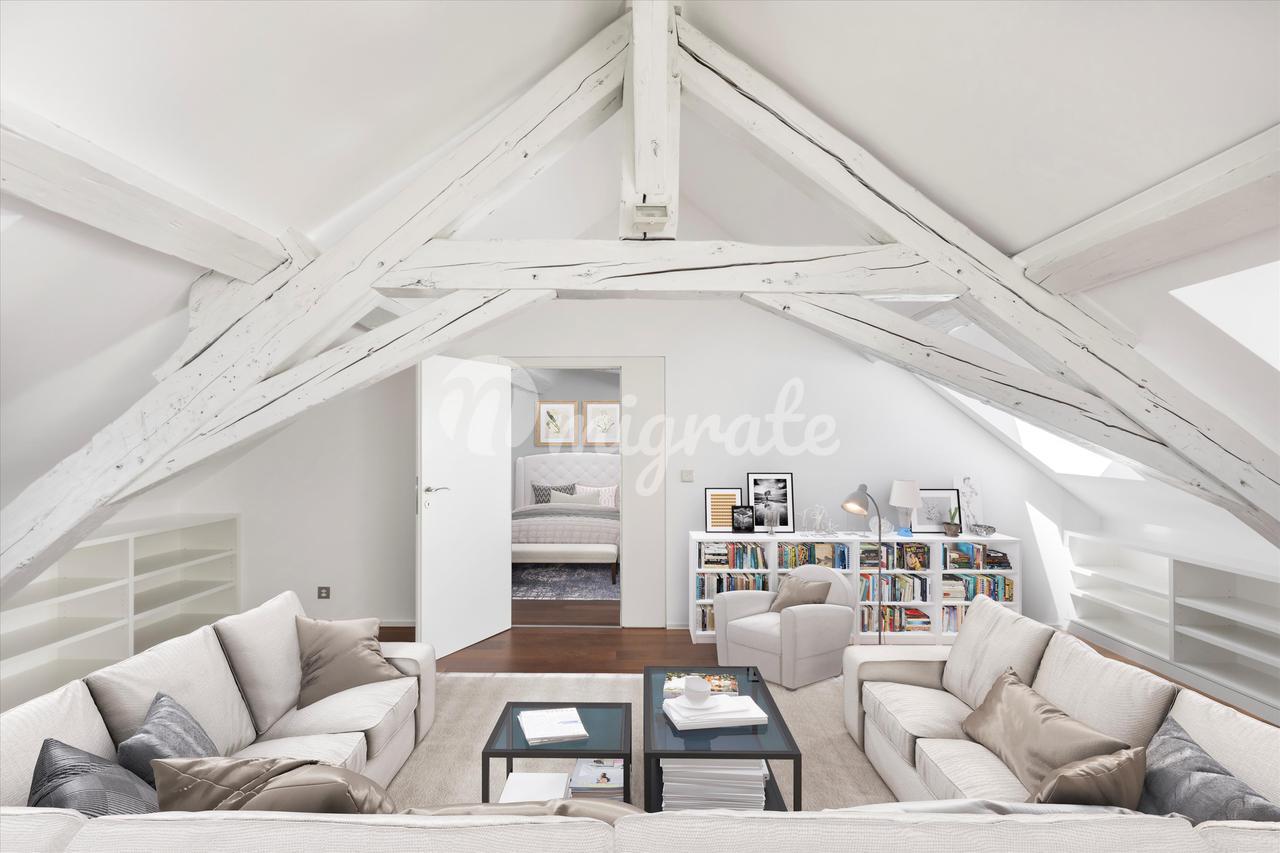 На мансарде находится пространство, полностью отведенное под гостиную / кабинет, спальню, гардеробную и полностью оборудованную ванную комнату.