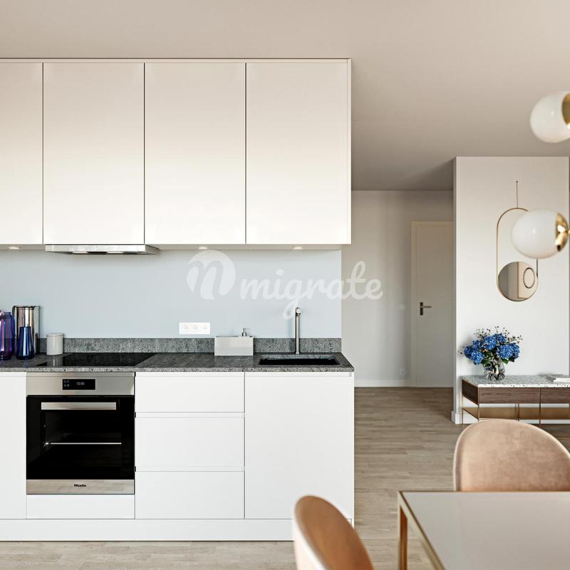 Просторная квартира с 3 спальнями в новом жилом проеке, который строится в растущем деловом квартале в раойне Фридрихсхайн. Здесь расположены множество IT-стартапов, офисы Mercedes-Benz, PORR, Zalando